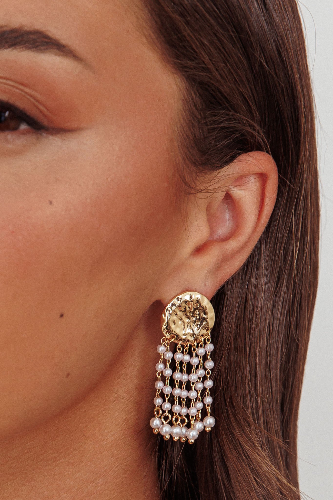 Complete your look with our gorgeous Alina earrings. They feature a pretty, faux pearl tassel design and a hammered metal disc and are perfect for a date night or glam event. Team them with our Well Versed dress for a look that is sure to get you noticed.