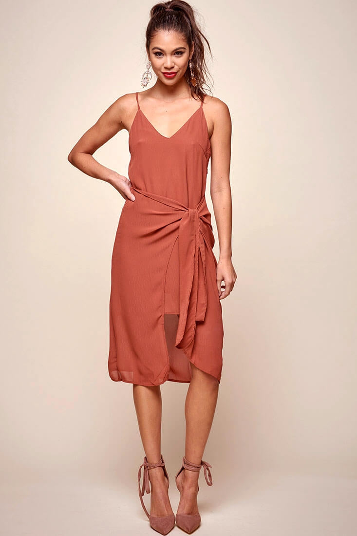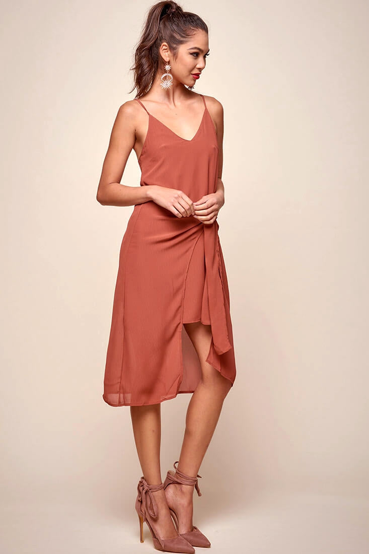 Simple and chic, the Allyson Waist Tie Slip Dress is a beautiful look for a classy night out. The side slit provides a little bit of edge to this dress. Pair with black heels and slinky jewelry.