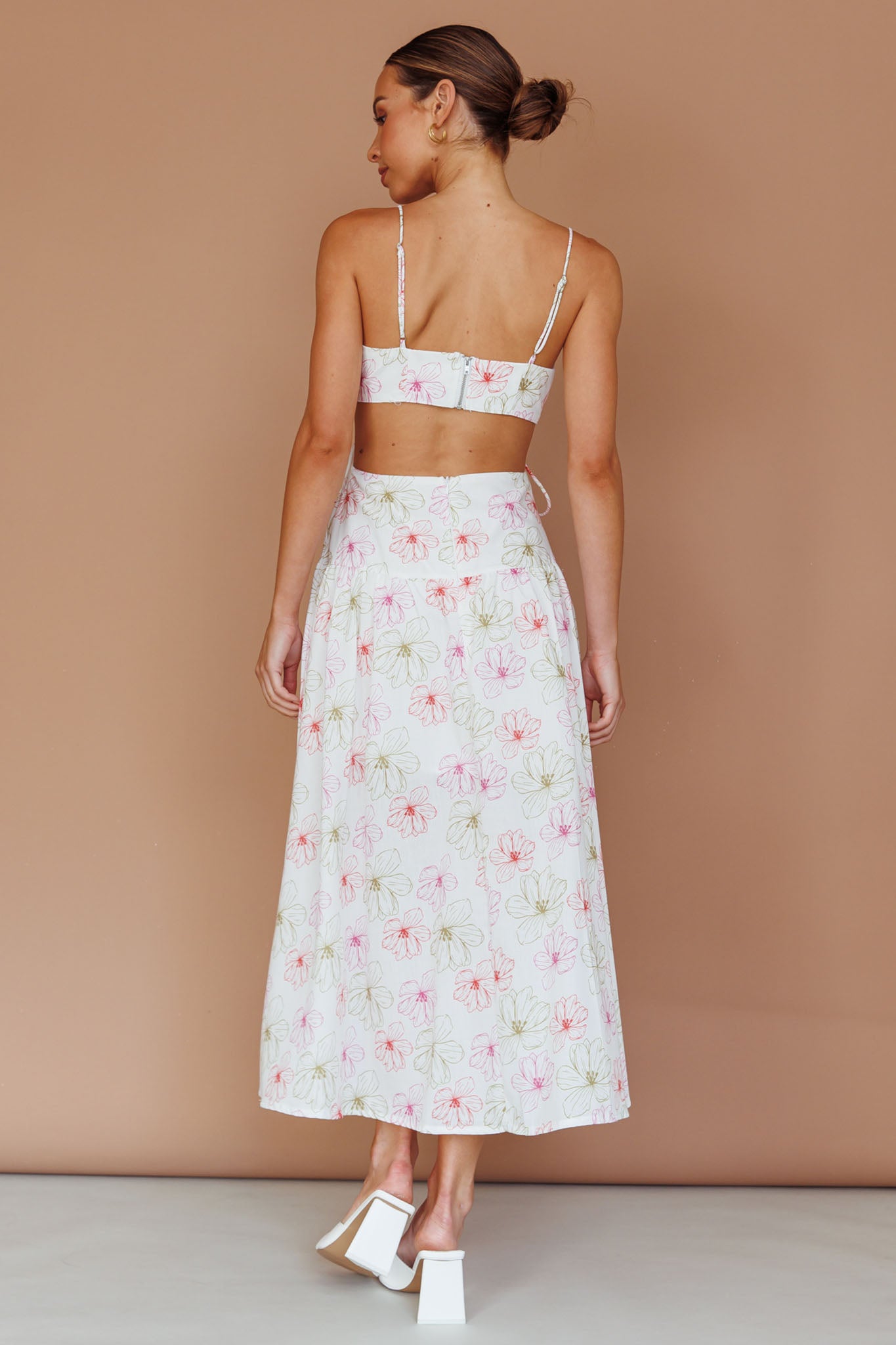 Float through the day in our pretty Aloha midi dress. Featuring a cut-out waist and string tie details in the side. It's perfect for coffee dates with your girls teamed with mules and a tote for a look we are loving.