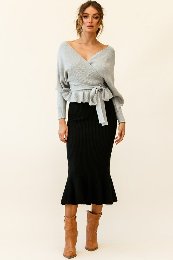 Cozy up in our chic Amara knit top. Featuring long sleeves, surplice neckline and a super cute peplum waist. We are loving the cut-out back detail. Perfect for the office teamed with sleek wide-leg pants or go casual with skinny blue jeans and tan boots for a look we are loving.