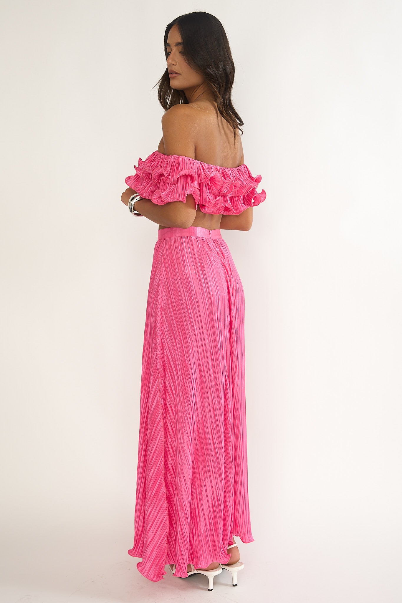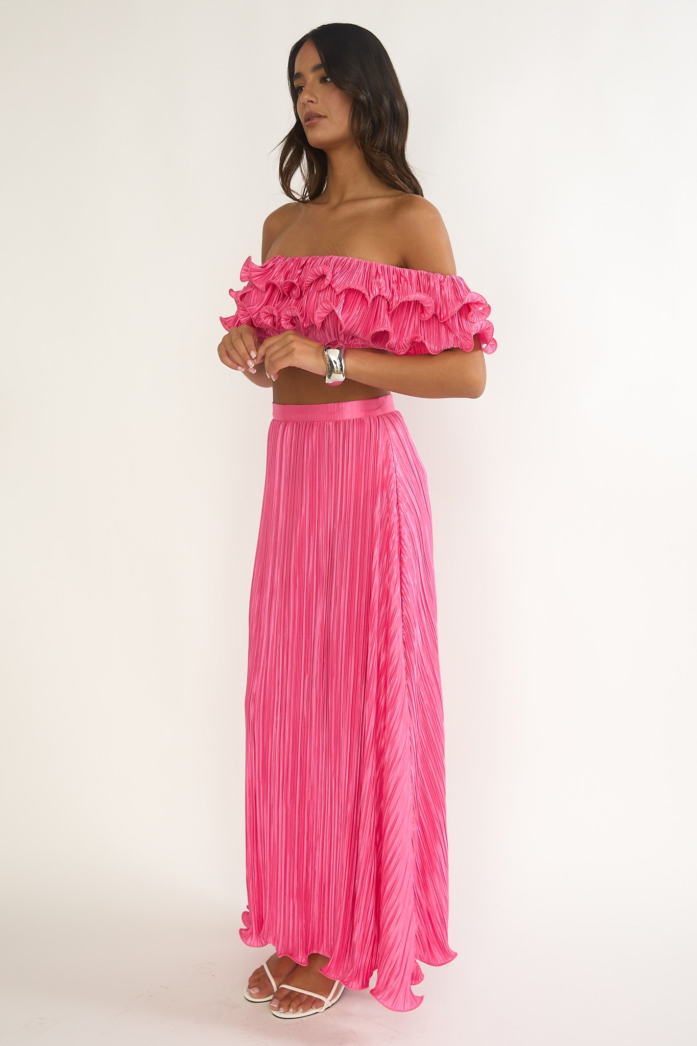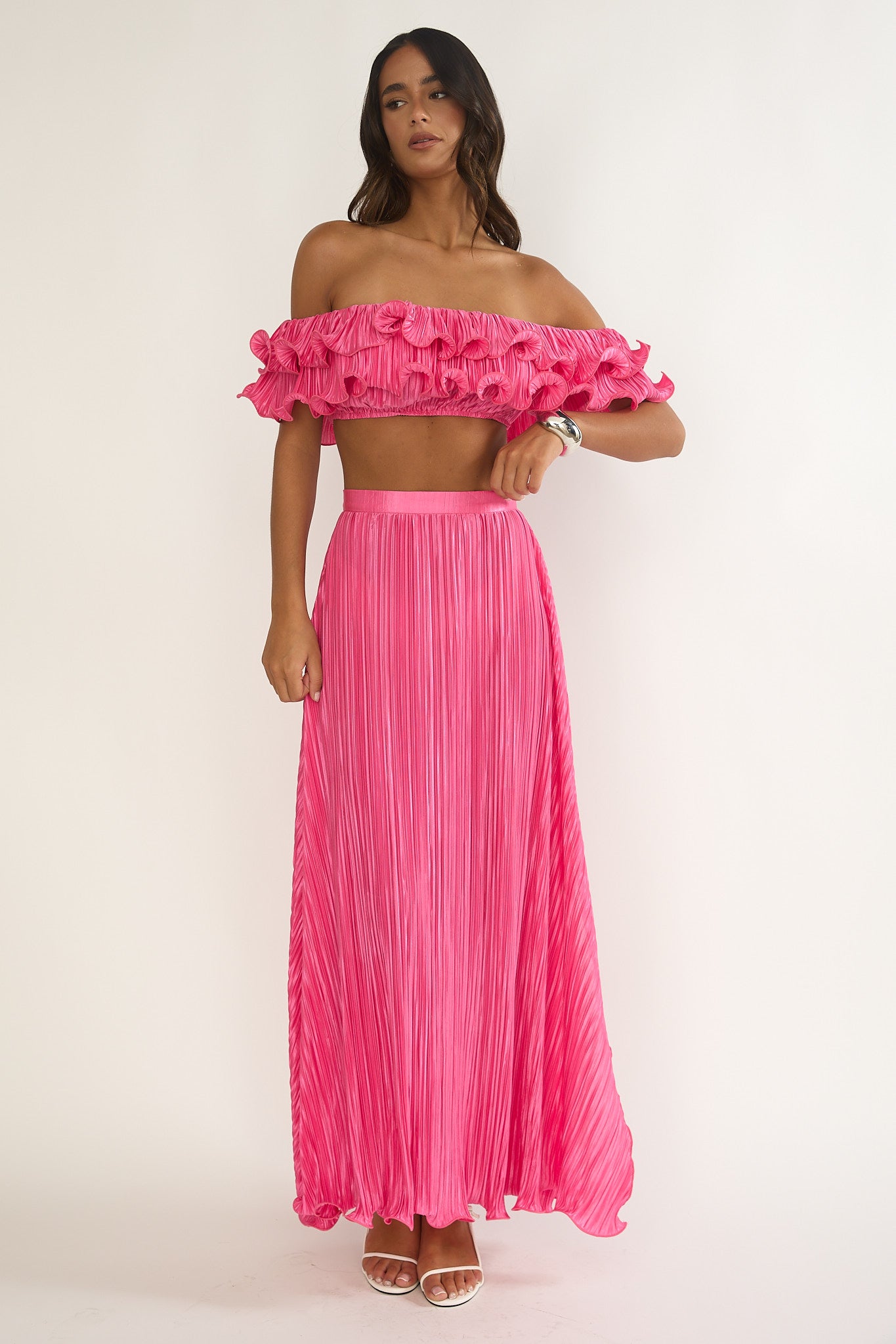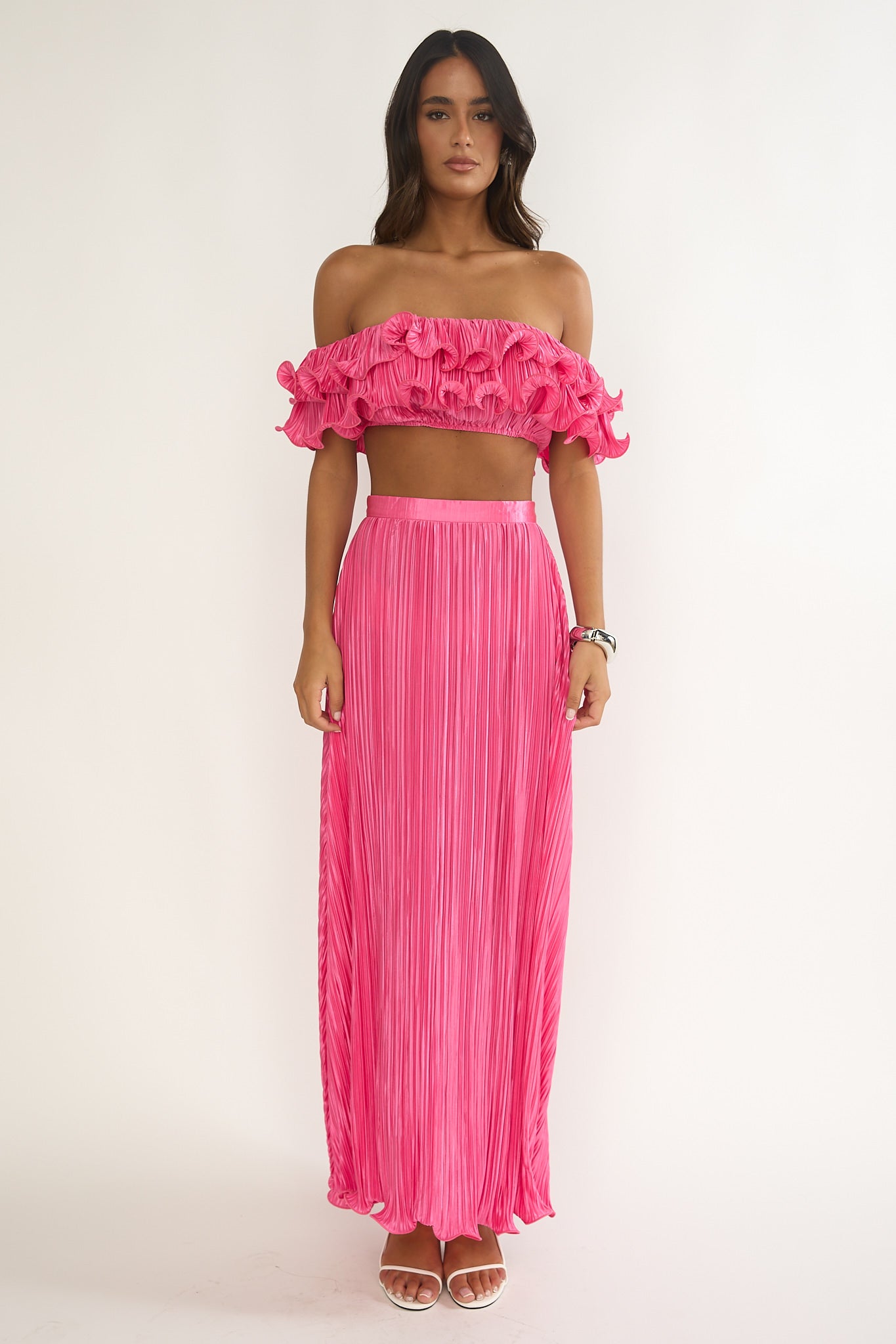 You will feel like a goddess in our stunning Amaria maxi skirt. It features a gorgeous, crepe-textured satin and lettuce-edge hem. It's perfect for a birthday celebration teamed with its matching crop top, nude heels and a clutch for a jaw-dropping look.