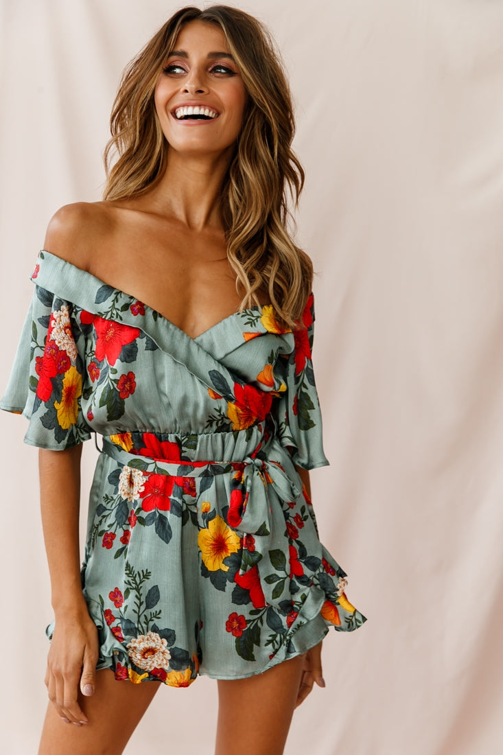 We are in love with this playful romper featuring a stunning off-shoulder design, belted waist-tie and beautiful floral print fabric. We are loving the cheeky tiered frills at each side of the shorts! Wear it to happy hour with the girls or your next swanky rooftop pool-party and get ready to steal the show.