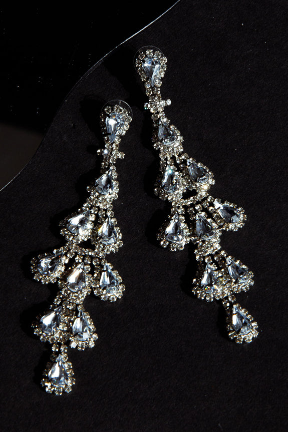 Make a statement in our stunning Amina chandelier earrings. Fit for a princess, they feature tiered, pear-shaped crystals and diamante embellishment. Perfect for a wedding or special occasion. Team them with an elegant gown or playful, satin mini dress for an unforgettable look.