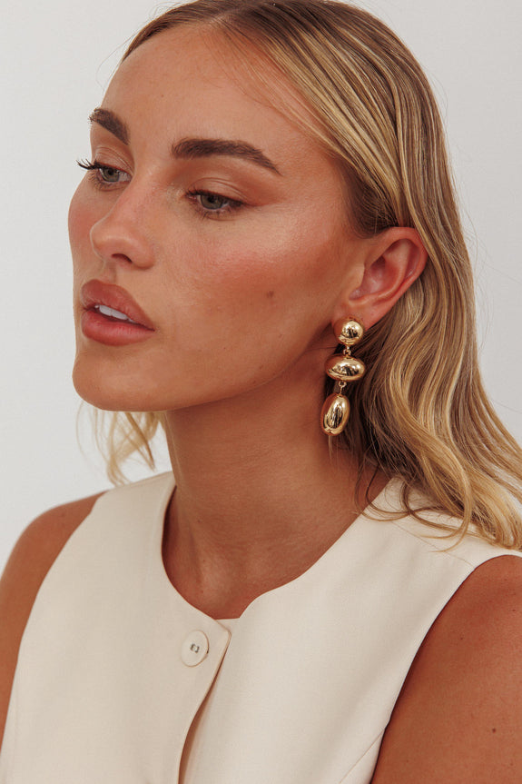 Amy Pebble Droplet Earrings Gold