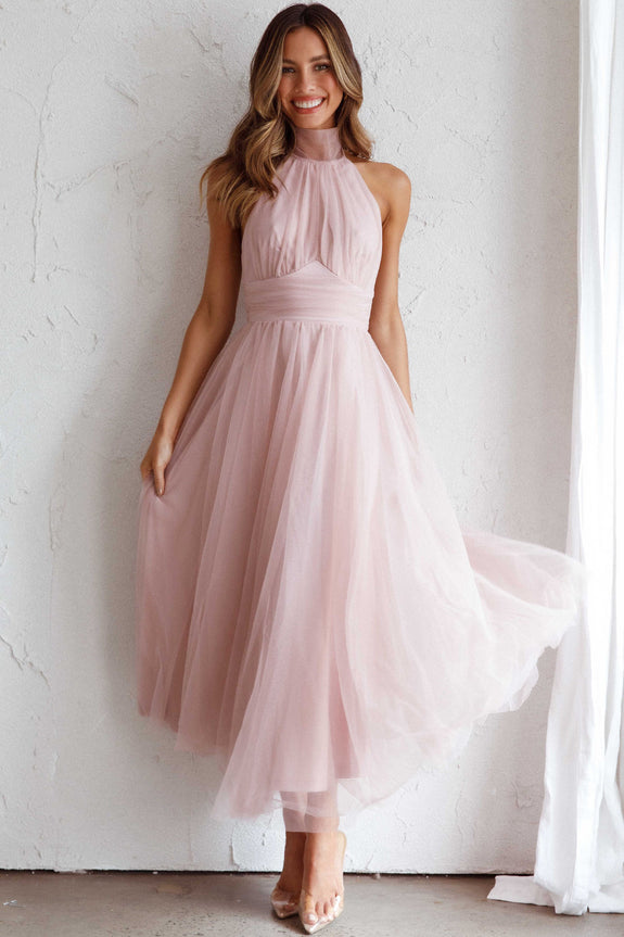 Andria Halterneck Tulle Midi Dress Blush