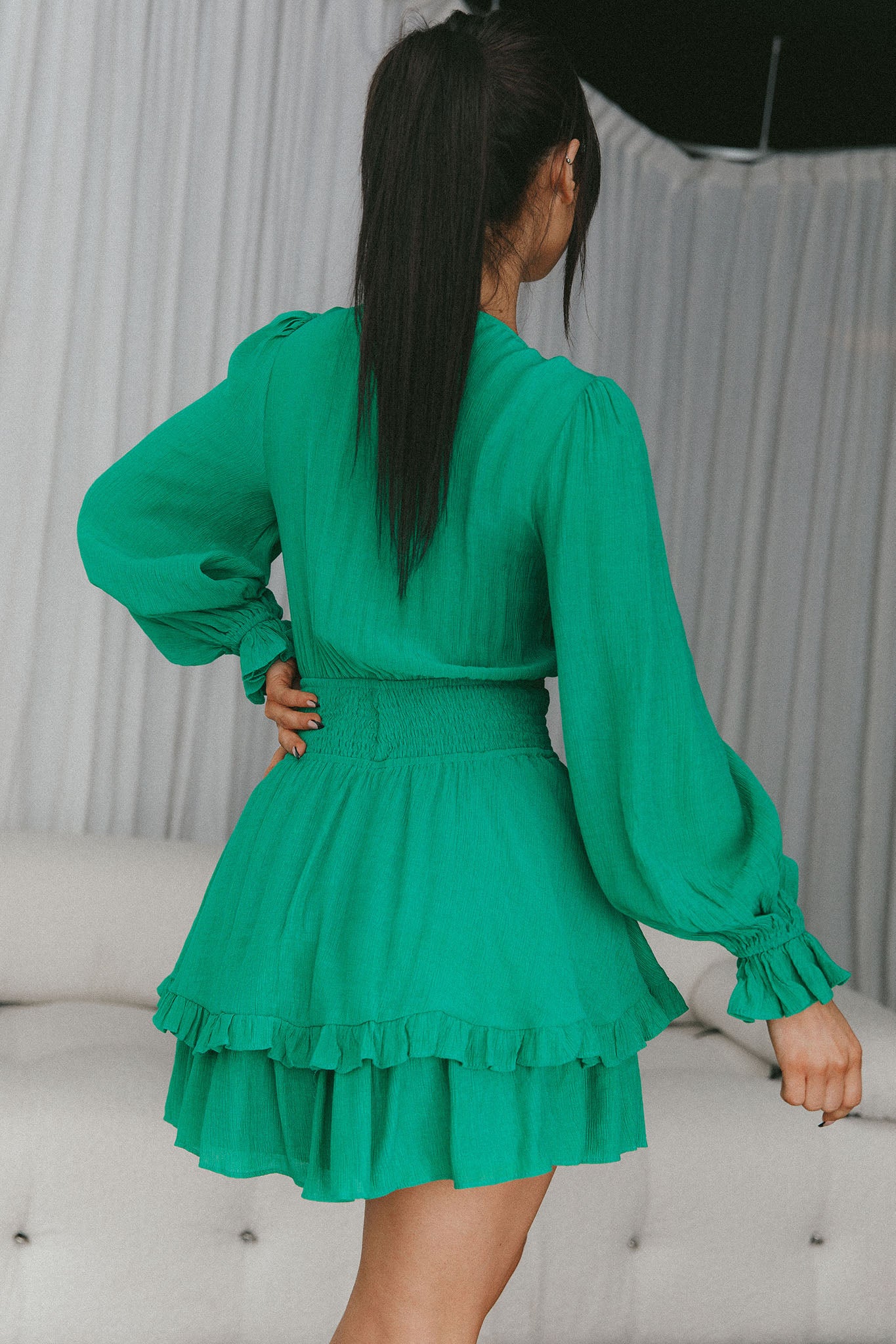 Anthea Bow-Tie Front Layered Frill Dress Green