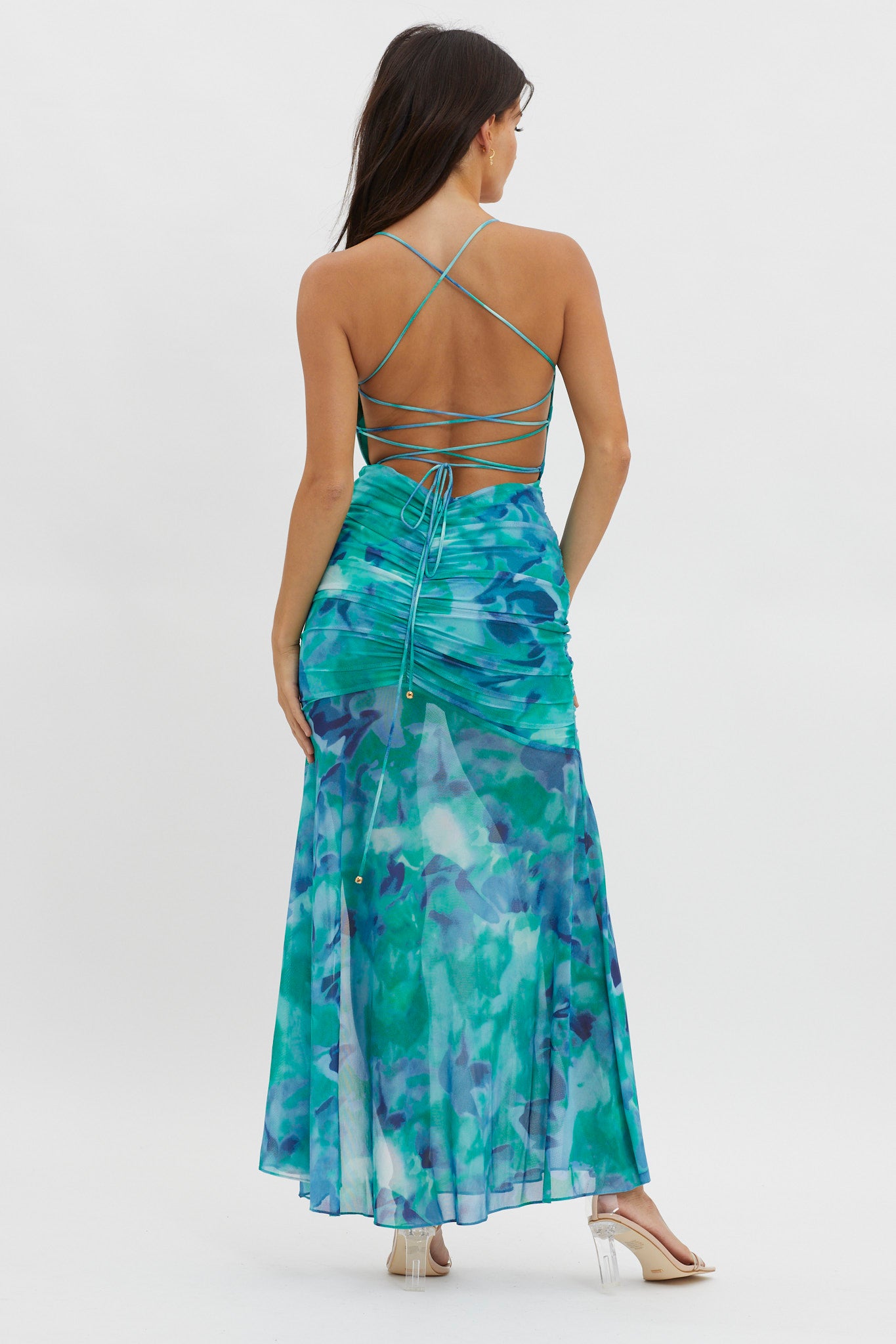 Apryl Ruched Lace-Up Back Dress Green