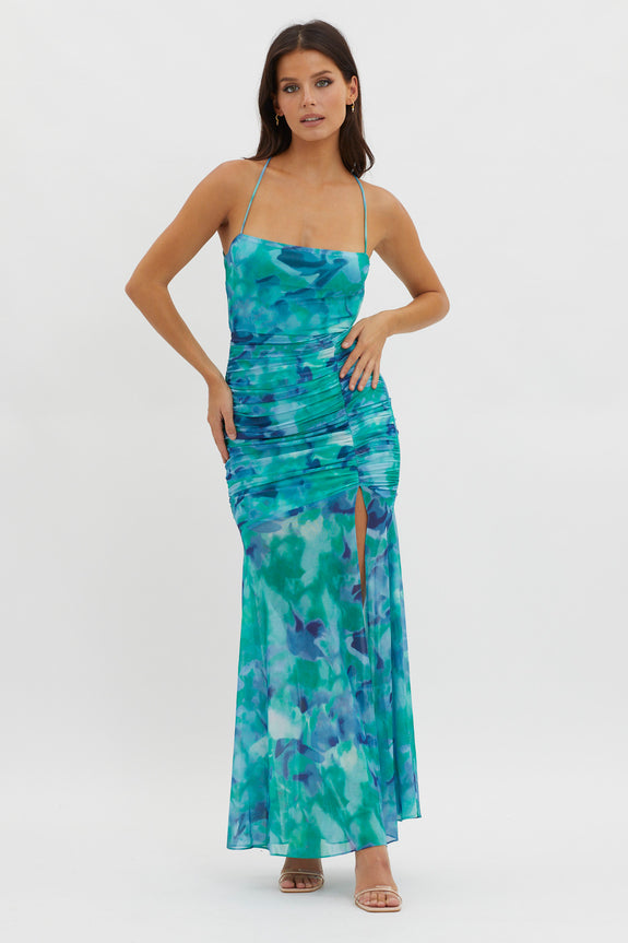 - Green print dress