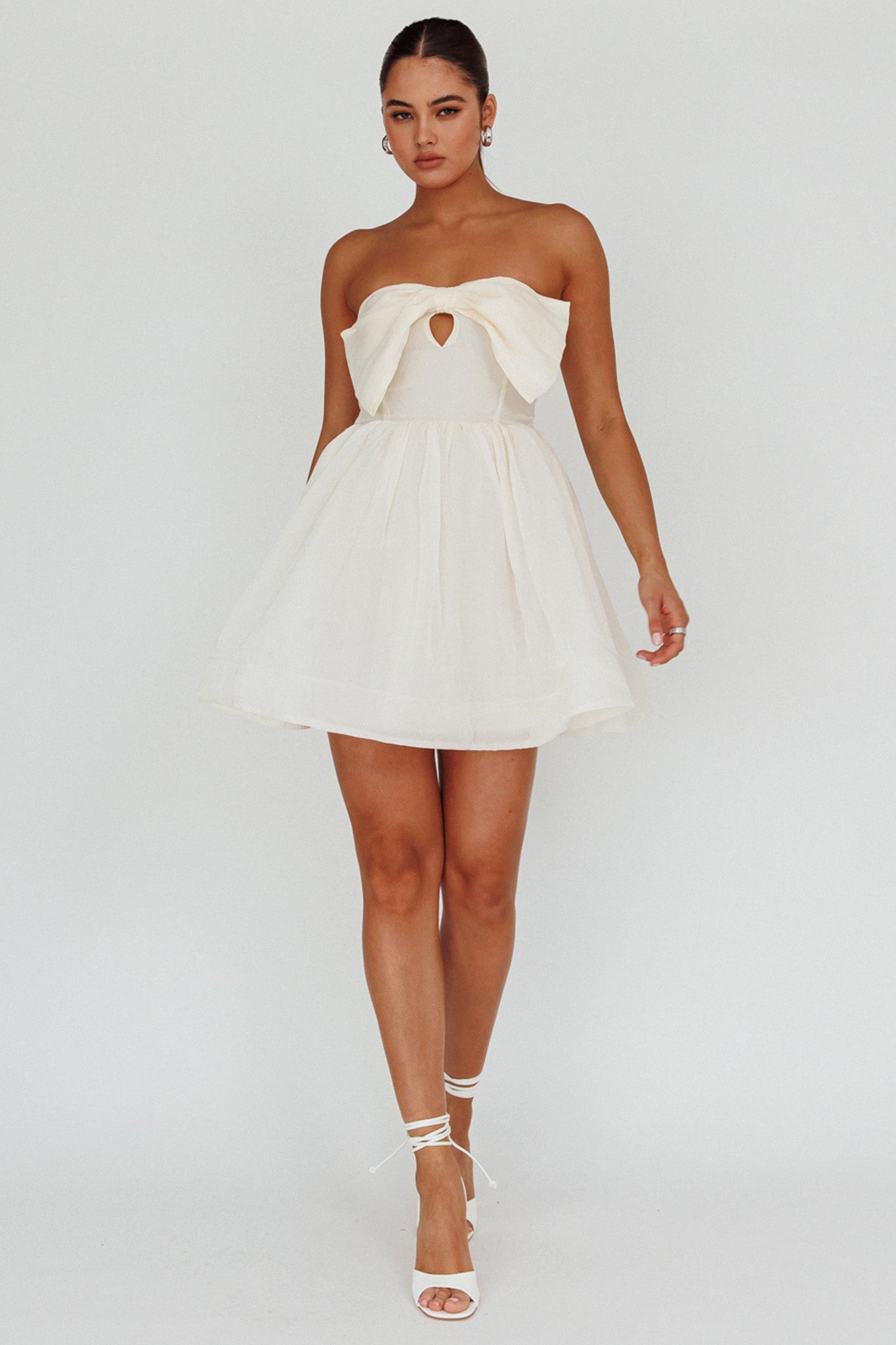 You'll feel like you're living a fairytale in our Arabesque mini dress. We are obsessed with its enlarged bow feature in the bust and A-line skirt; it's perfect for twirling the day away! Wear it for your bachelorette party or birthday soiree. Team it with strappy heels and a satin clutch for a look we are head over heels for.