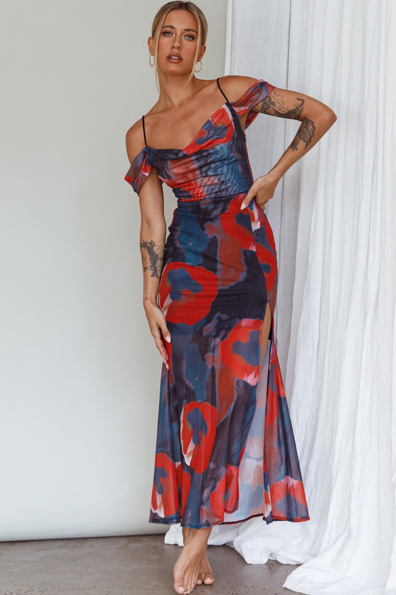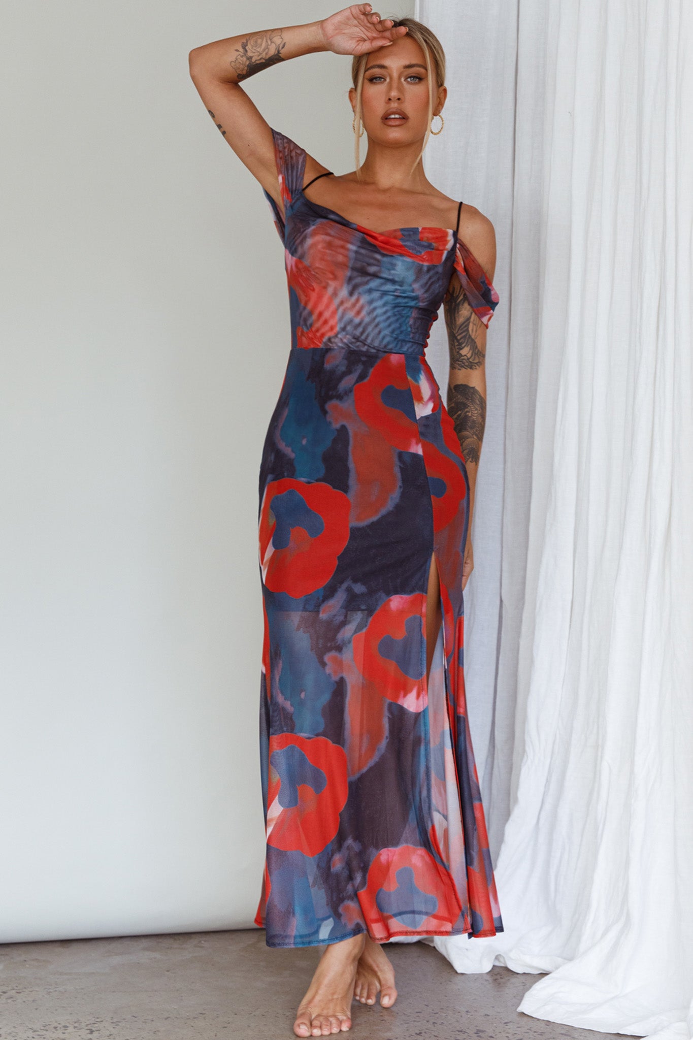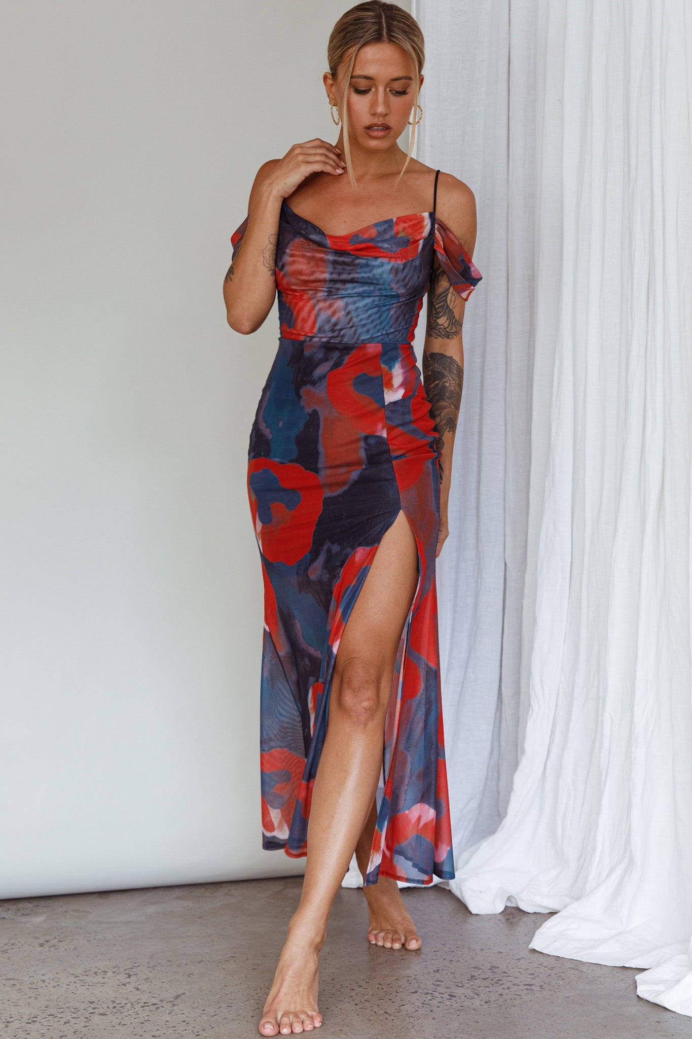 Heads will turn when you walk by in our gorgeous Arcadia dress. Featuring off-shoulder sleeves and a side split, it's perfect for girls' night out! Team it with strappy mules and a tote for a chic look we are loving.