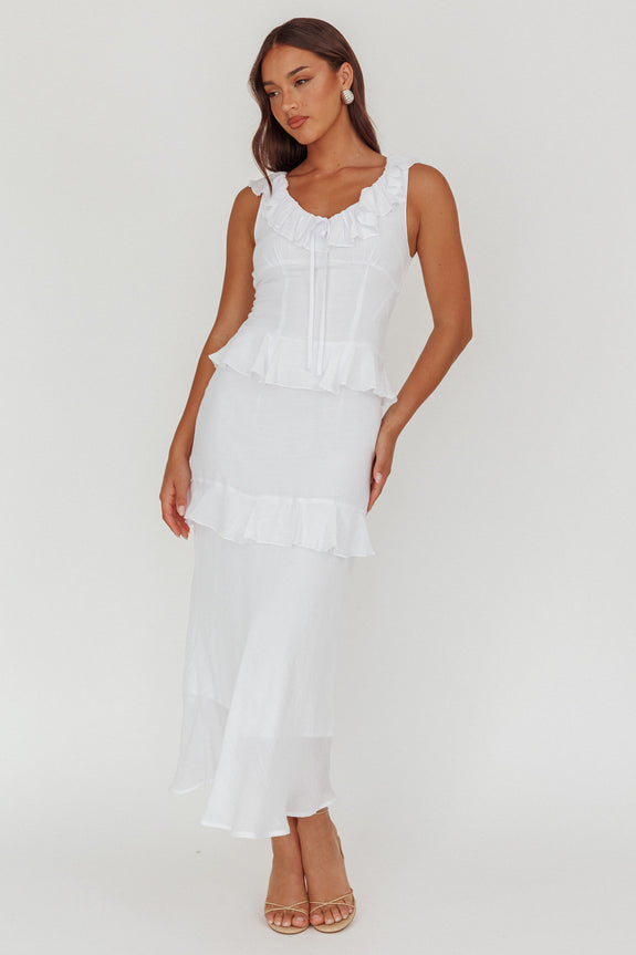 Arrabel Ruffle Trim Bust Tie Maxi Dress White