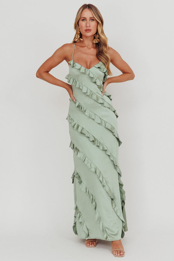 Steal the spotlight in our Arrabel maxi dress. Perfect for a bridal shower or a special birthday celebration! We are in love with its ruffle trim throughout and strappy back! Team it with a clutch and nude heels for a look that will turn heads.