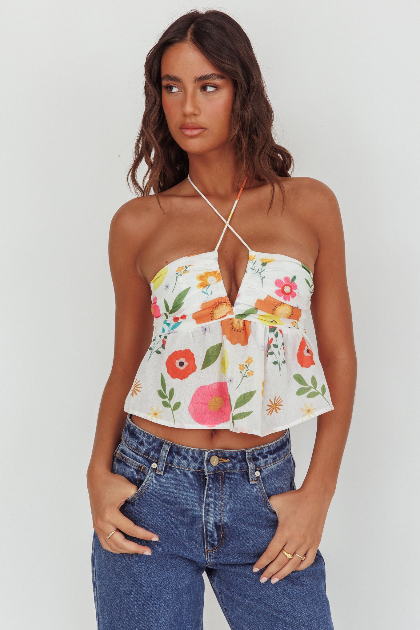 Float through your weekend in our gorgeous Asiah top. Featuring a gorgeous print and halter design, it's perfect for a Summer night out with your besties. Team it with a mini skirt and tan mules for a chic look we are loving.