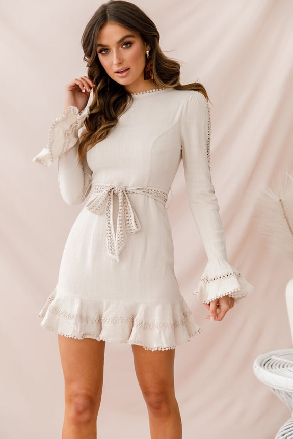 Channel your inner aristocrat in our elegant Aspley dress. Featuring on-trend flare cuffs, belted waist tie and pretty embroidery detail and trim throughout. Super chic, this dress is perfect for everything from your boss babe board meetings to dinner dates with bae. Team it with classy nude heels and get ready to turn heads.