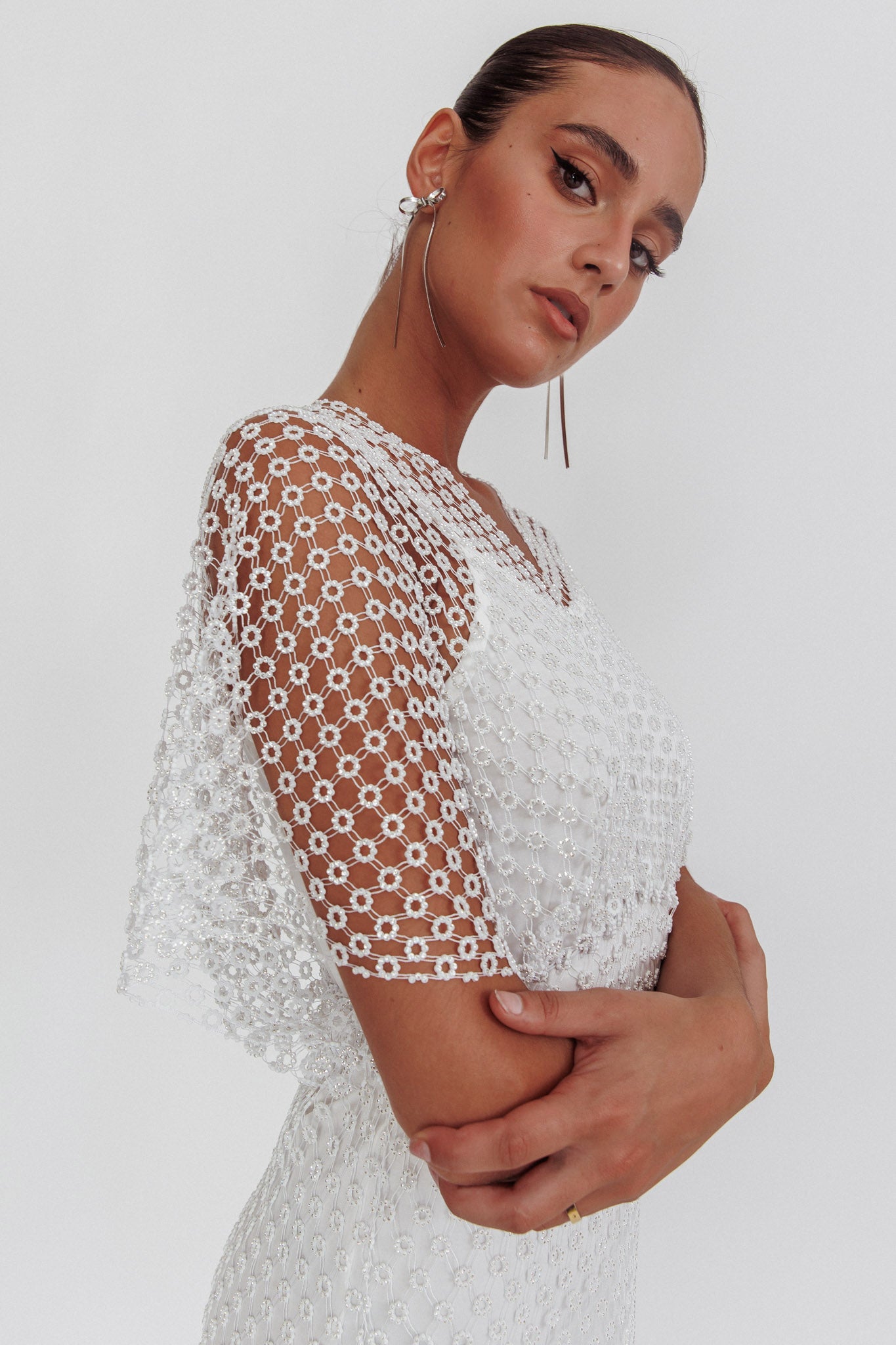Okay, girl! We see you! You will light up every room in our sparkly Astra midi dress. It features a gorgeous diamante fishnet overlay and a slip mini dress underneath. Wear it out with your girls for a night on the town! Team it with strappy, tie-up heels and a clutch for an unforgettable look.
