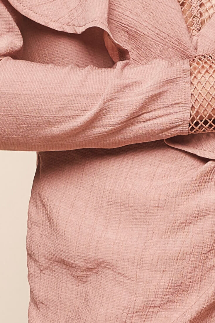 Studio 54 Ready! The eyelet detail along the V-shaped bust line are a welcome addition to the ruffled and side waist tie.
