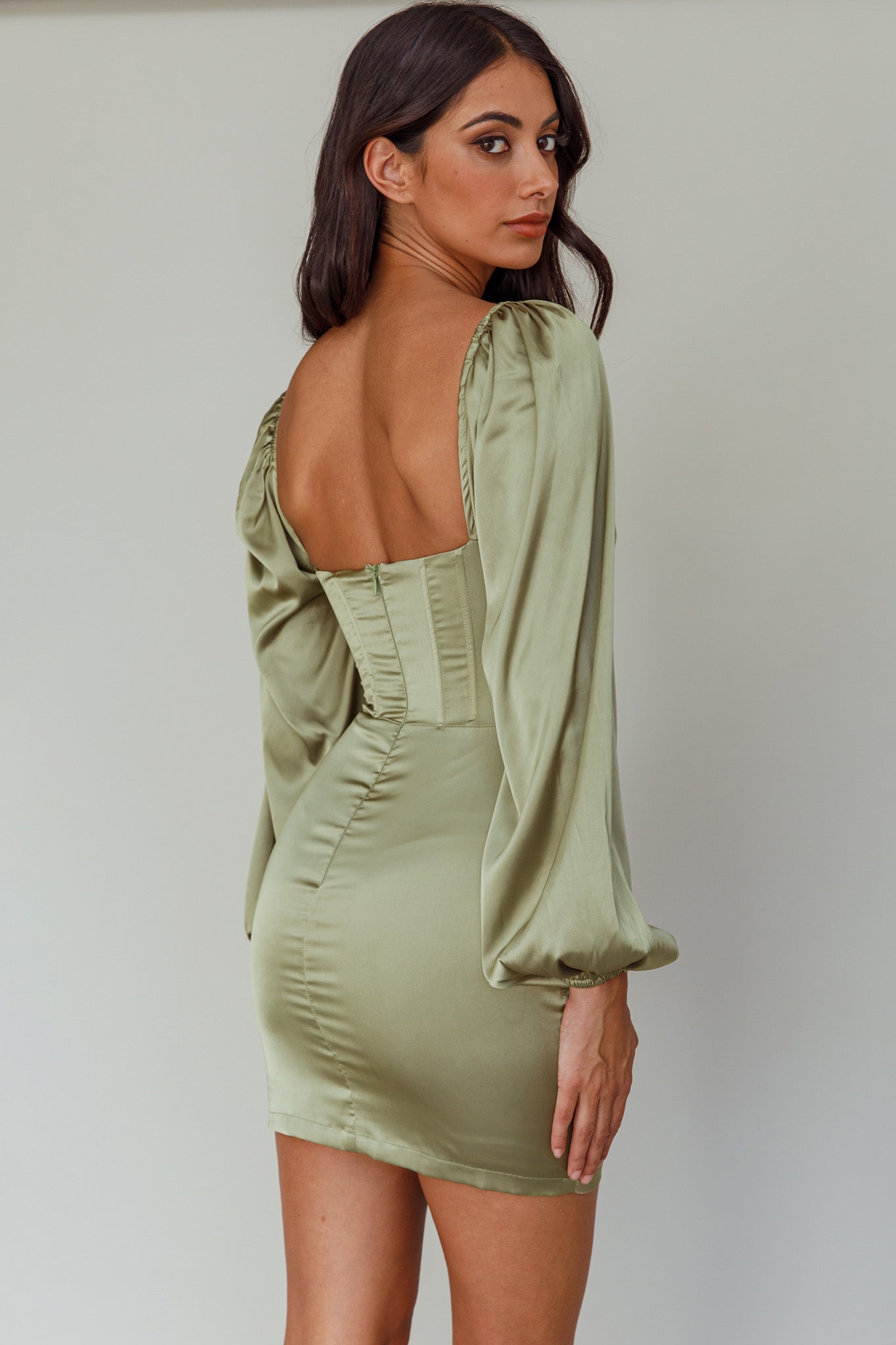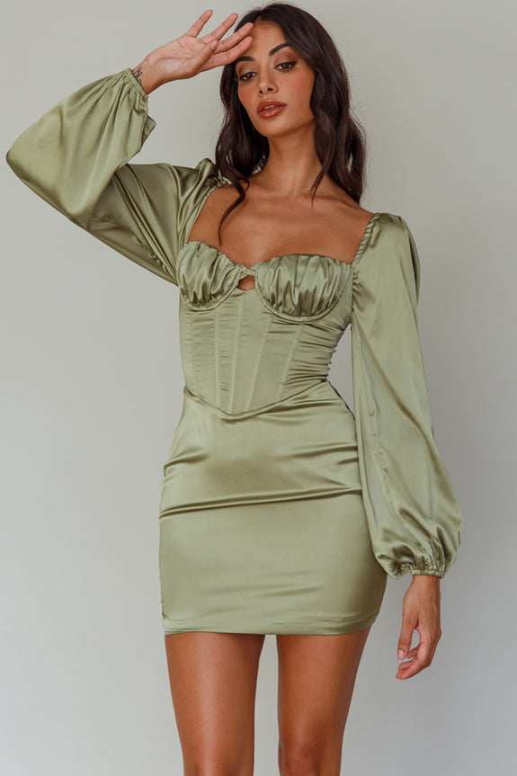 Steal the spotlight in our gorgeous Au Revoir mini dress. Featuring a corset-style bodice and long, balloon sleeves. It's perfect for a girls' night out or special birthday celebration. Team it with gold heels and a clutch for a look that will turn heads.