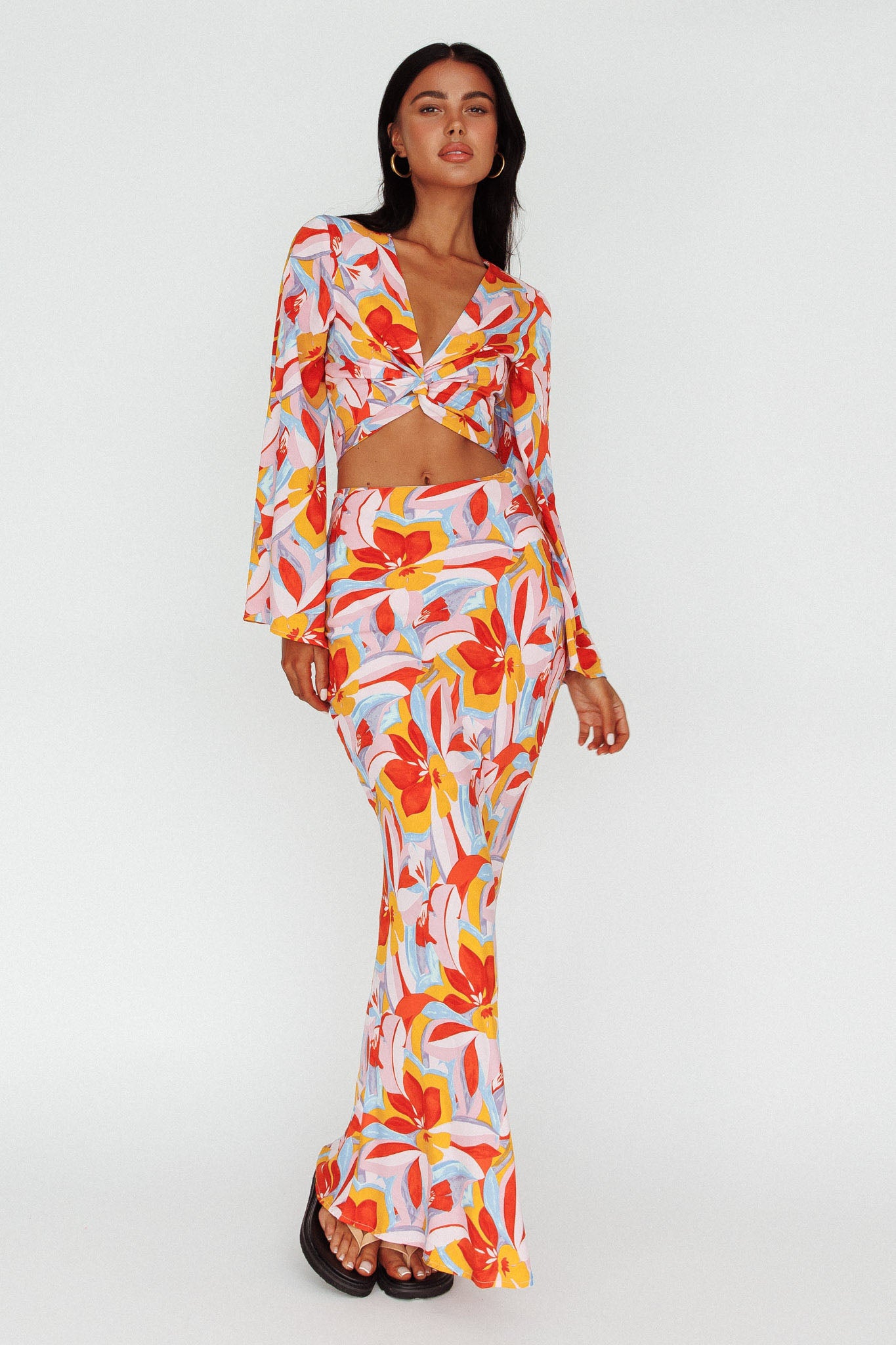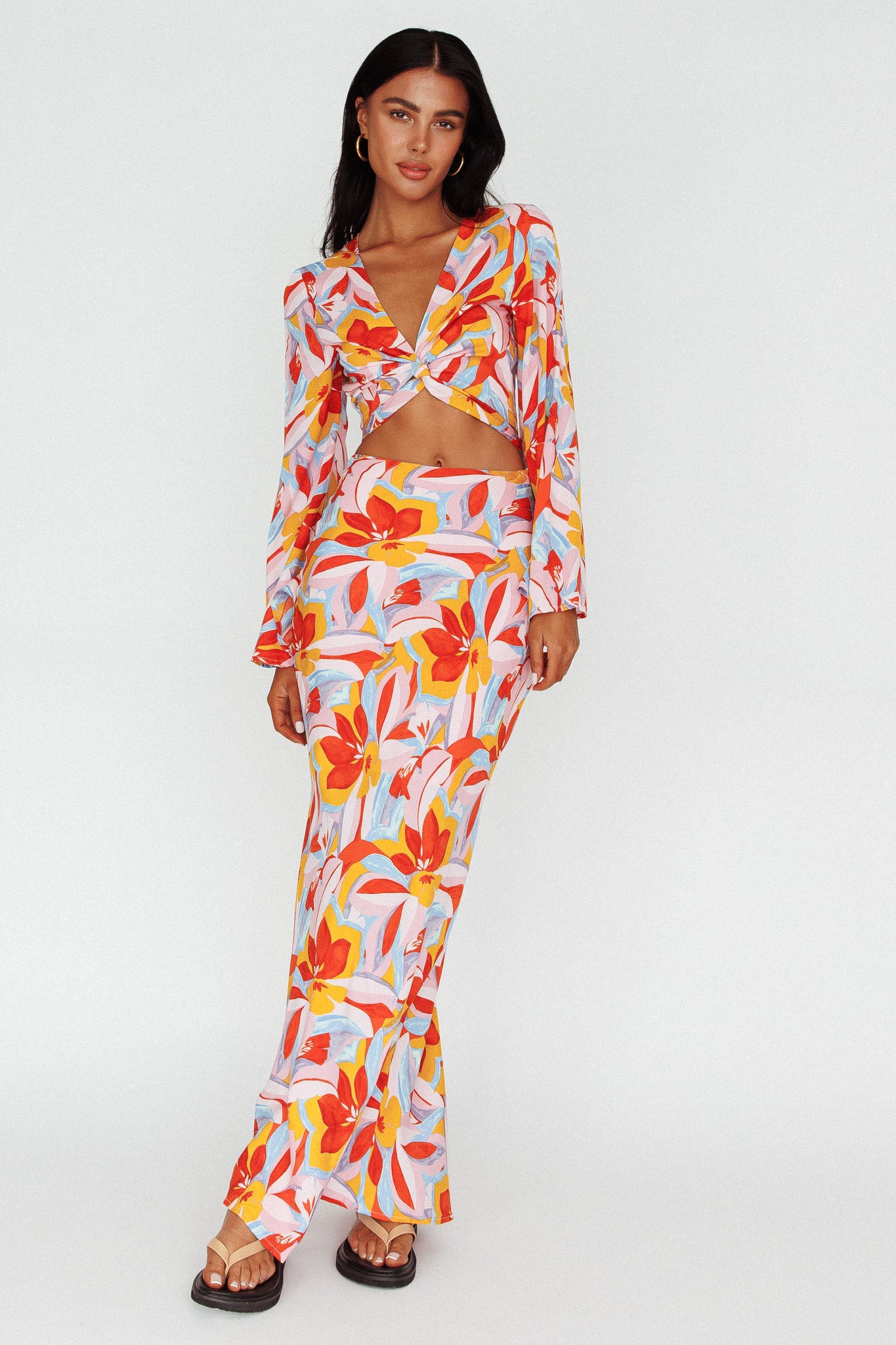 Your closet is calling, it needs this skirt! We are in love with our chic Avalo skirt. Featuring a maxi length and pretty print. It's perfect for rooftop nights at your fave bar. Team it with its matching crop top and mules for an on-trend look.