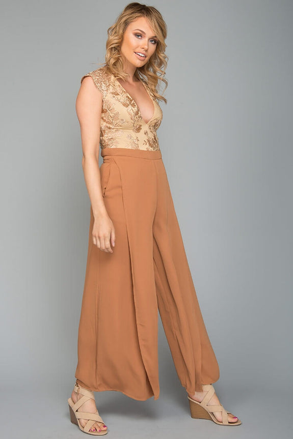 You'll be the epitome of sophistication in the Ayelle Wide Leg Dress Pant. Pair with a similar-colored corset or suit jacket and dark colored heels.