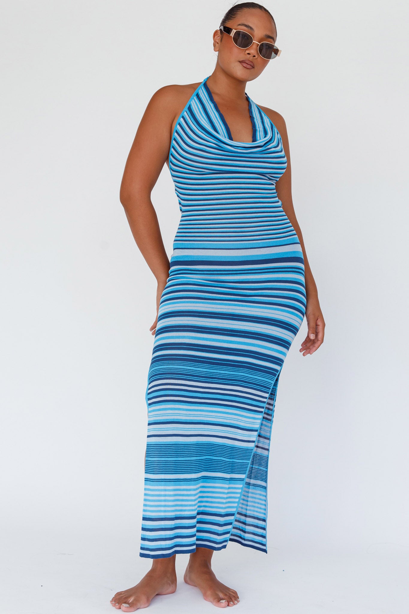 We are majorly crushing on our hot Azure Shores midi dress. Featuring a chic, cowl halterneck and an open back with adjustable straps. Perfect for weekend pool parties or sunset happy hour with your girls. Team it with mules and a tote for a look that will turn heads.