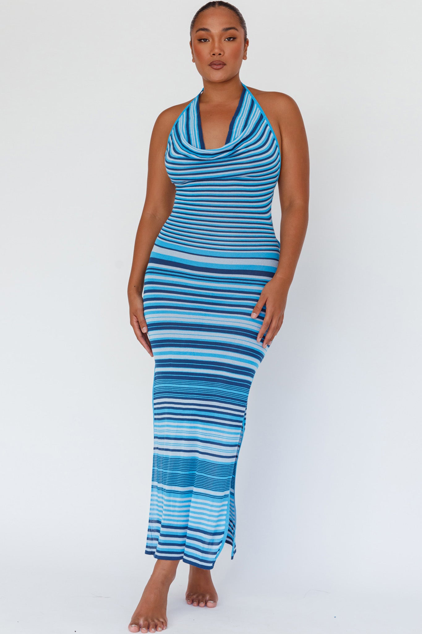 Azure Shores Knit Midi Dress Striped Blue