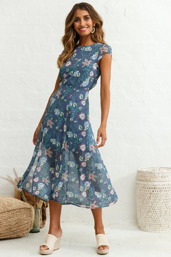 You are one classy lady in our Becky midi dress. Partially lined, it features chic cap sleeves, a crew neck, midi length and pretty cut-out back. Perfect for work or brunch with your besties, this dress is super versatile and elegant. Team it with pointed-toe flats and a straw tote for a look we are loving.