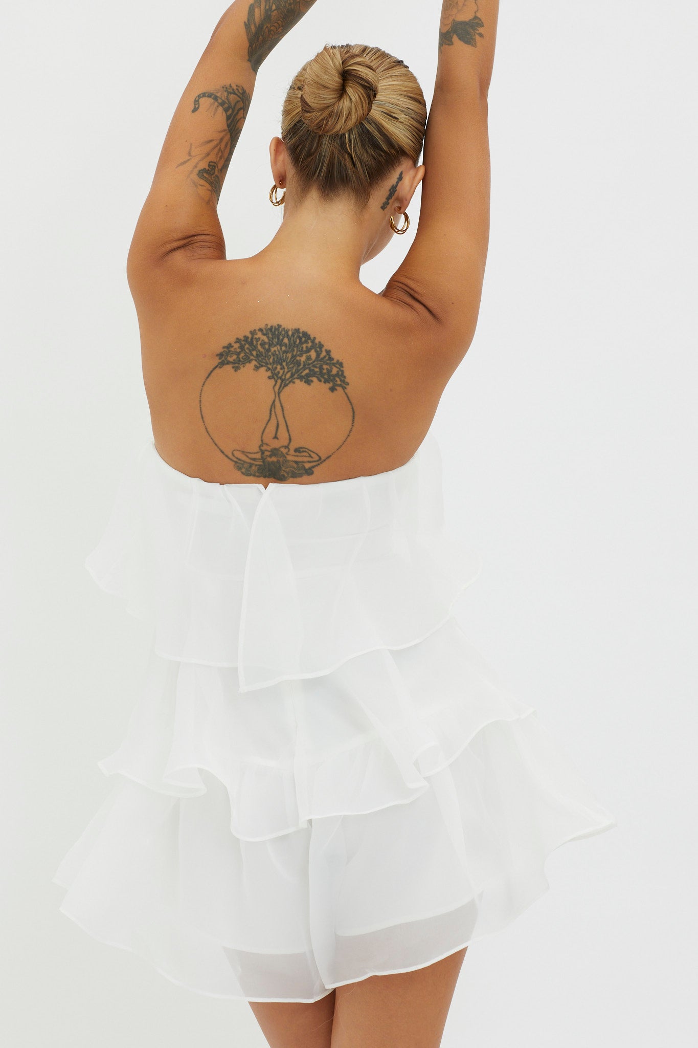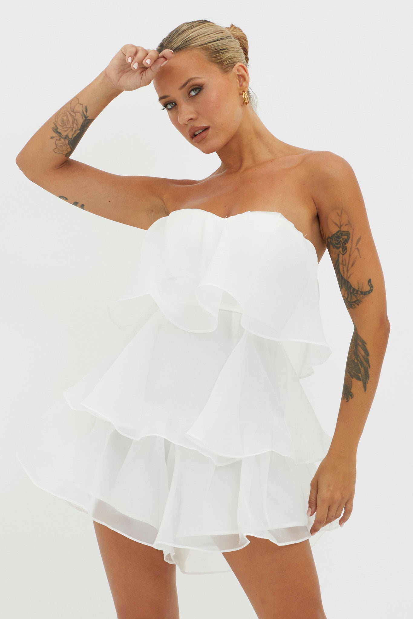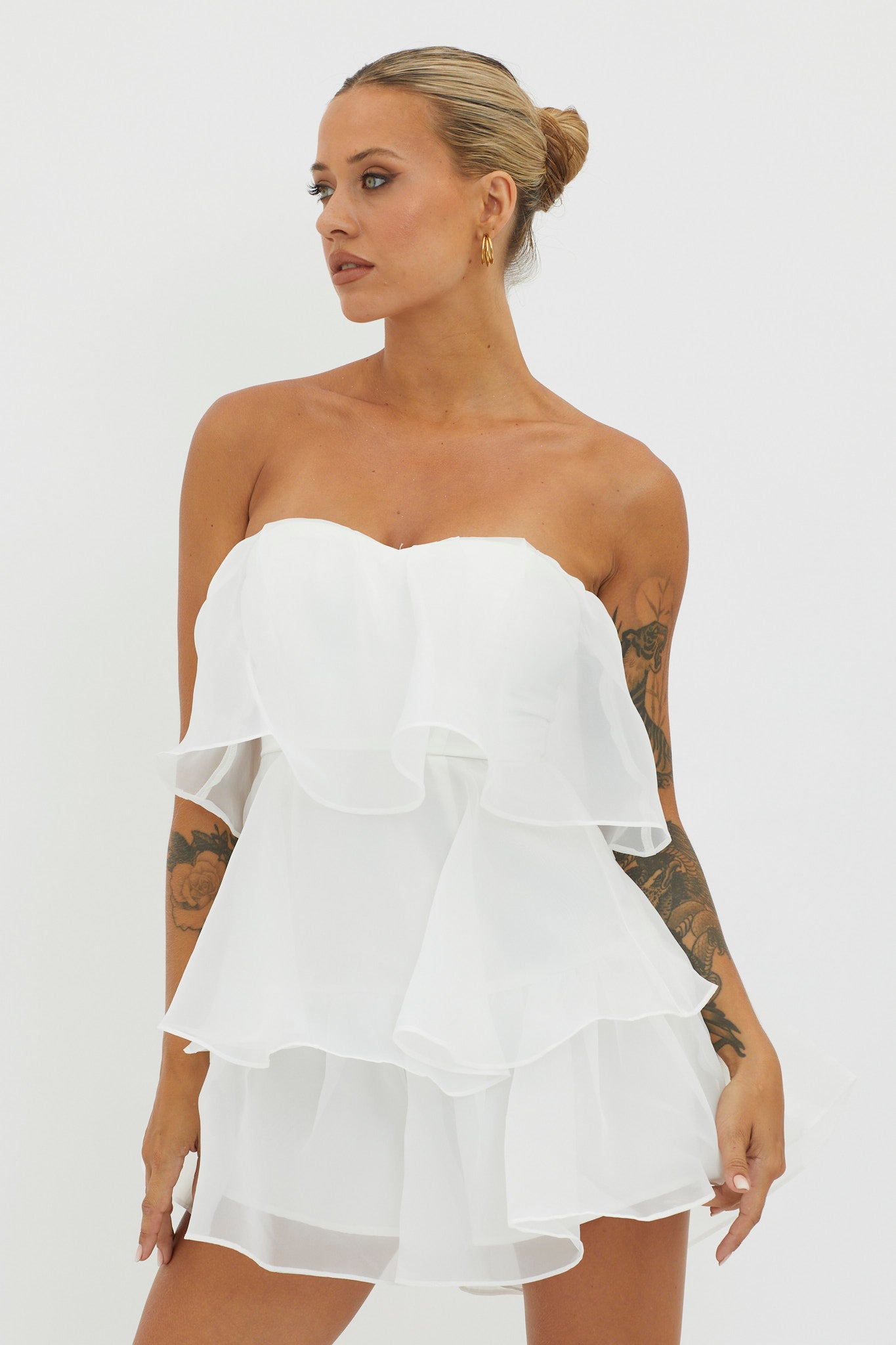 Steal the limelight in our stunning Behati romper. Featuring a pretty, layered design and a sweetheart neckline. It's perfect for a bridal shower or special occasion! Team it with white, strappy heels and a clutch for an unforgettable look.