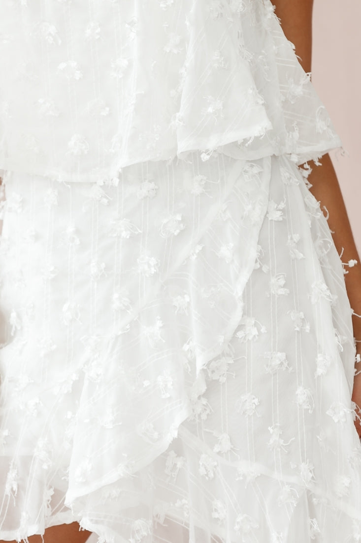 Featuring a tiered, embellished chiffon fabric, bandeau style bust and asymmetric hemline, this dress is elegant and feminine. Perfect for brunching in Beverly Hills with your best gals or a bridal shower celebration. Team it with strappy nude heels and delicate accessories for a look that oozes class and grace.