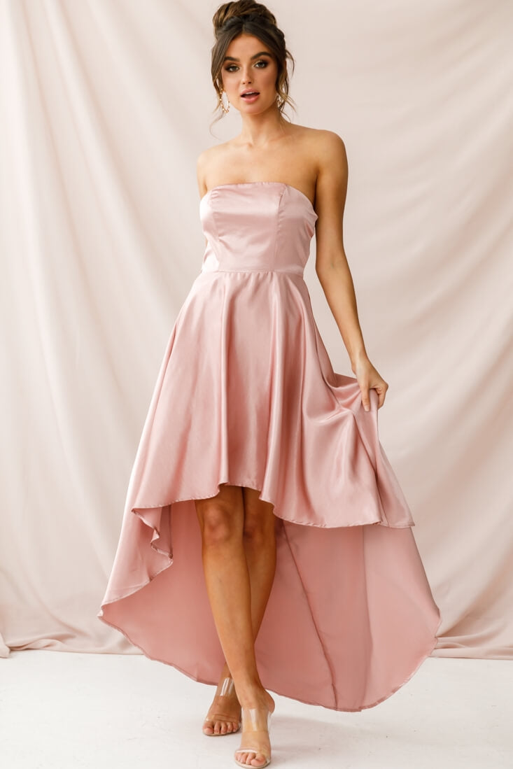 Be the belle of the ball in our pretty Belle dress! With it's flattering A-line cut and on-trend high-low hem, silky fabric, and stunning diamante straps across the back, this dress oozes red carpet elegance. Team it with some extra-bling jewelry or a smokey eye if you want to take it to the next level.
