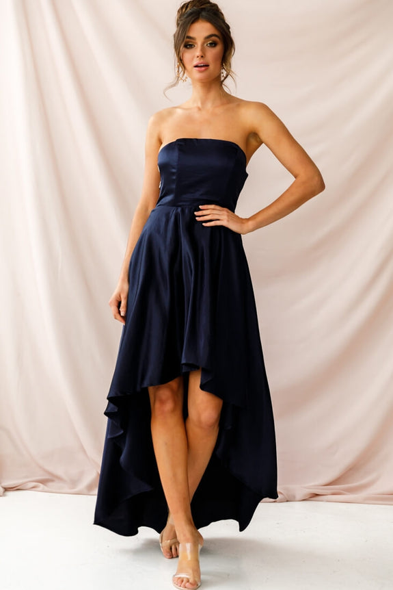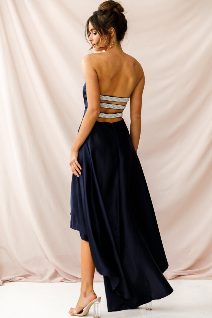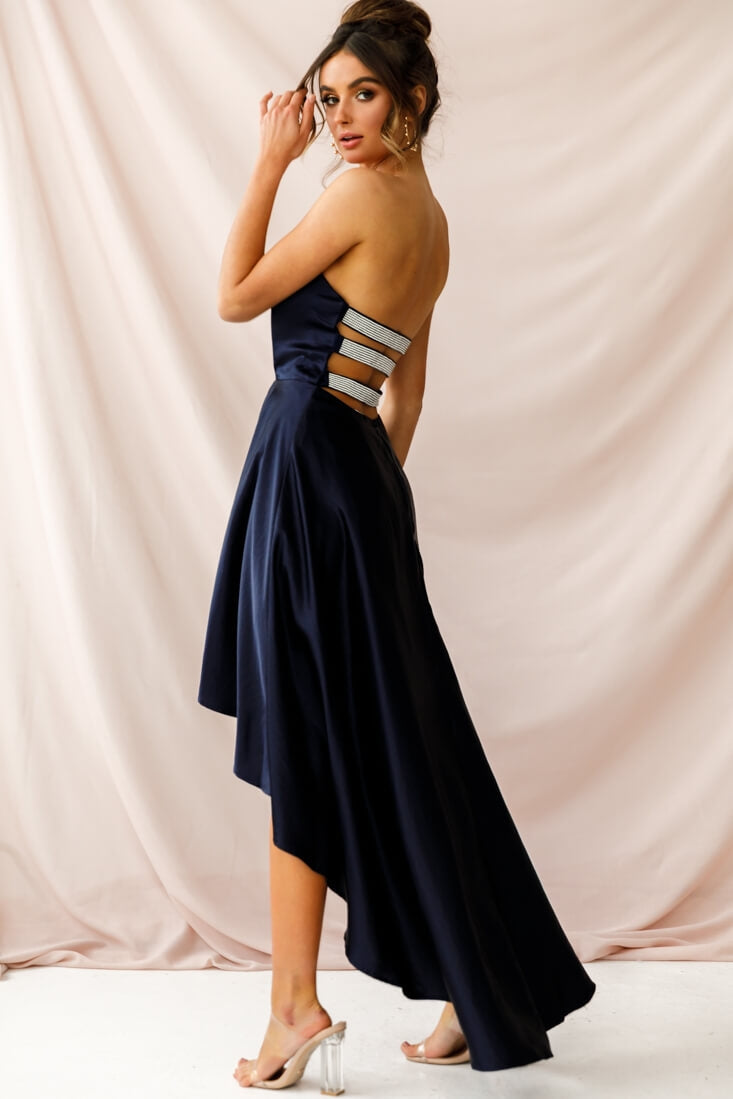 Be the belle of the ball in our pretty Belle dress! With it's flattering A-line cut and on-trend high-low hem, silky fabric, and stunning diamante straps across the back, this dress oozes red carpet elegance. Team it with some extra-bling jewelry or a smokey eye if you want to take it to the next level.