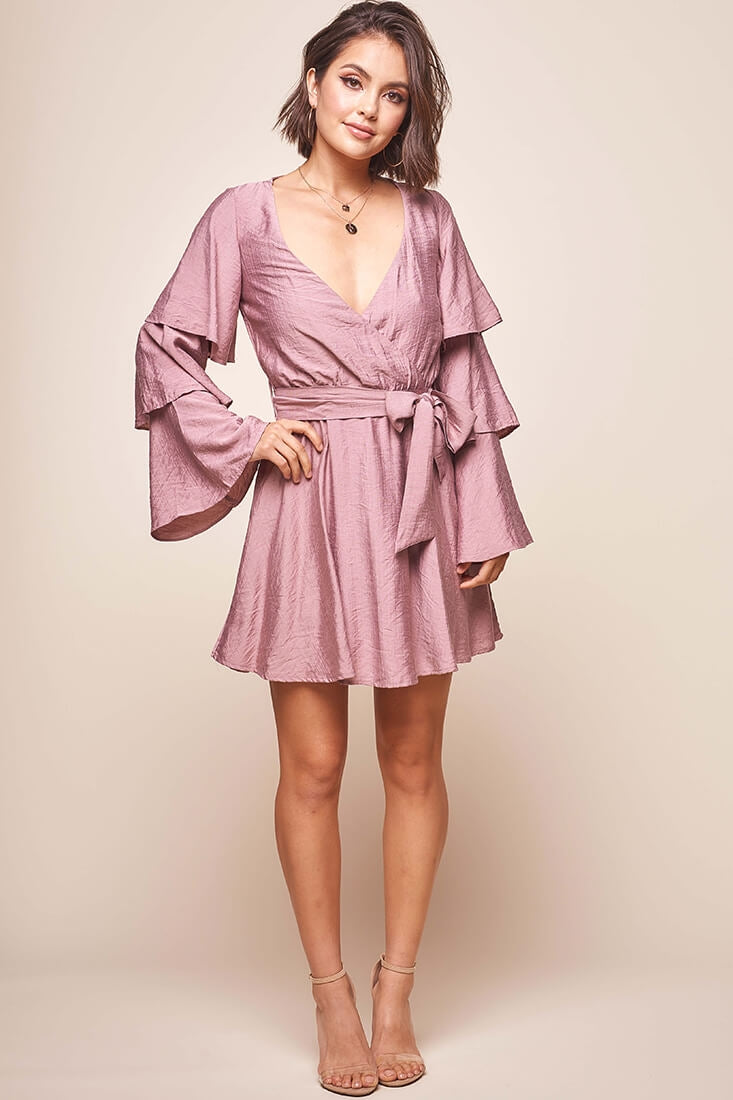 Bellini Tiered Ruffle Sleeve Dress Mauve