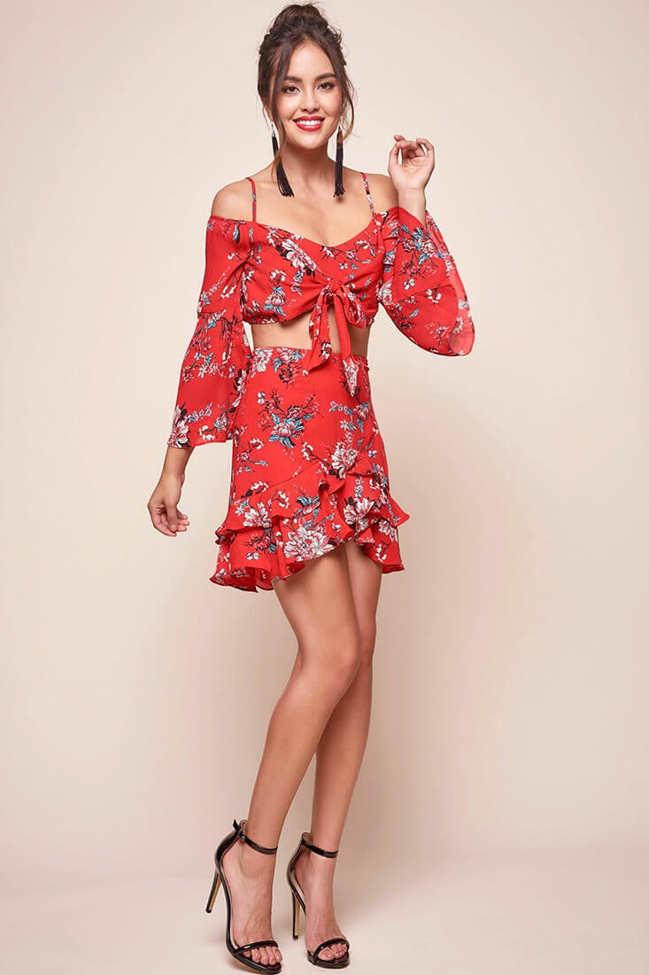 Ready for your holiday? Step away from the brisk winds by jet-setting to your favorite island in the Billisario Floral Cropped Top. Pair with the matching skirt for a collected effect.