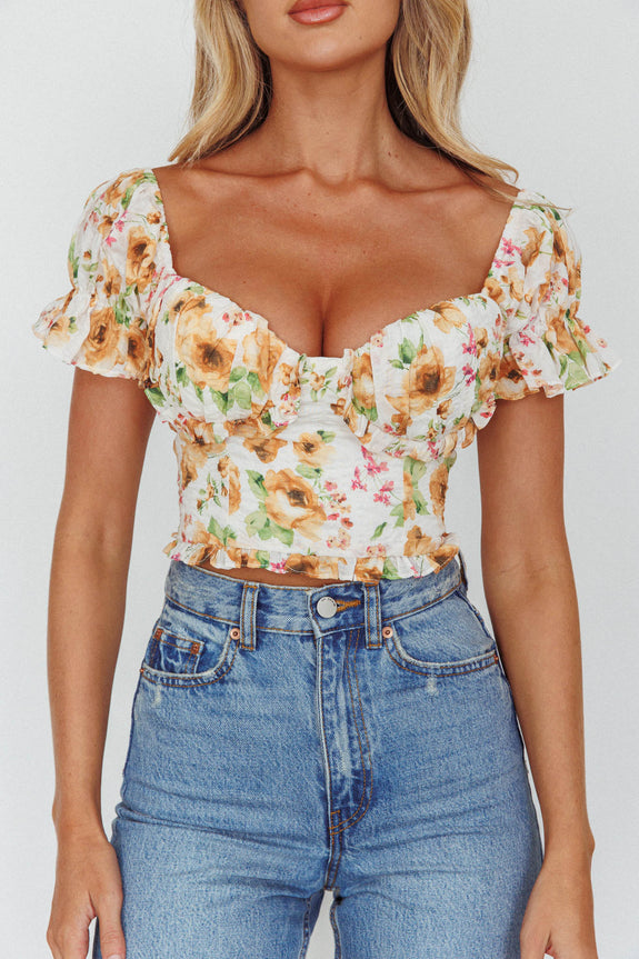 Besito Puff Sleeve Crop Top Floral White/Yellow