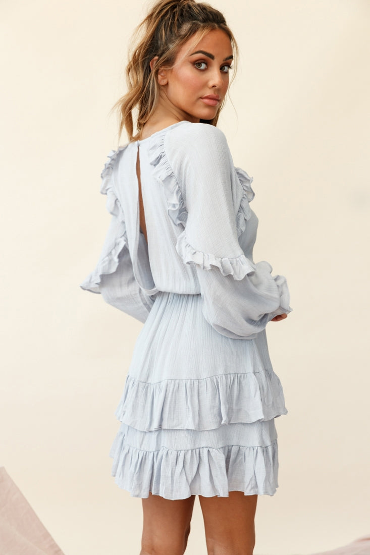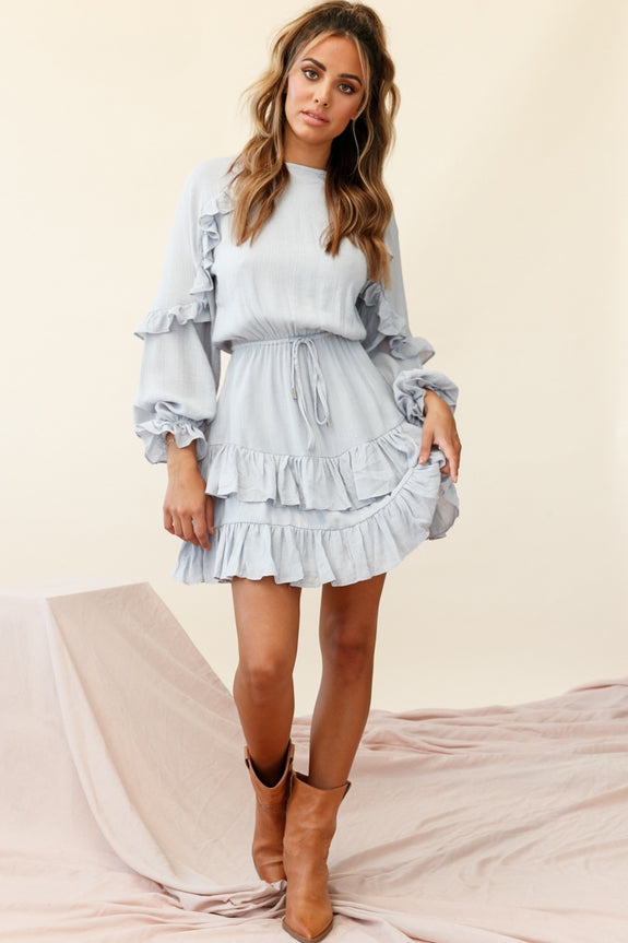 Best Wishes Long Sleeve Frill Detail Dress Grey