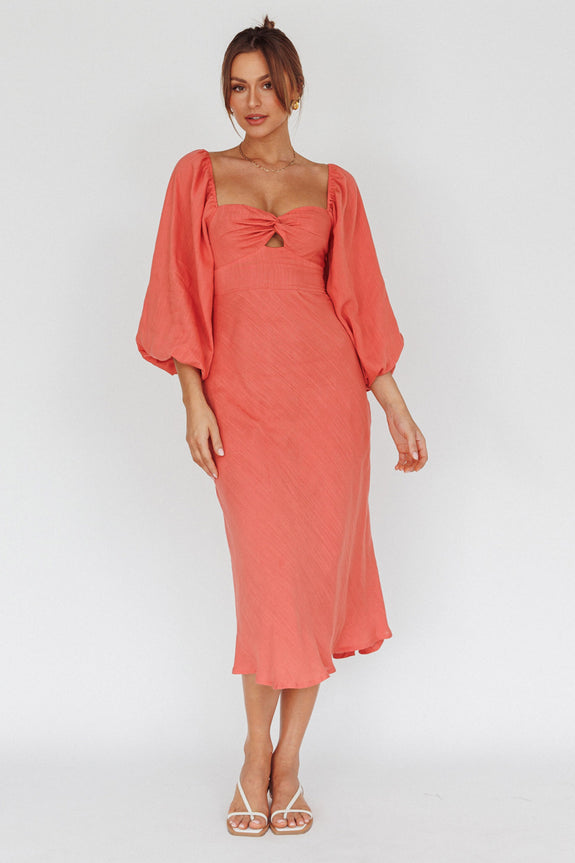 Betina Twist Bust Long Sleeve Midi Dress Lipstick