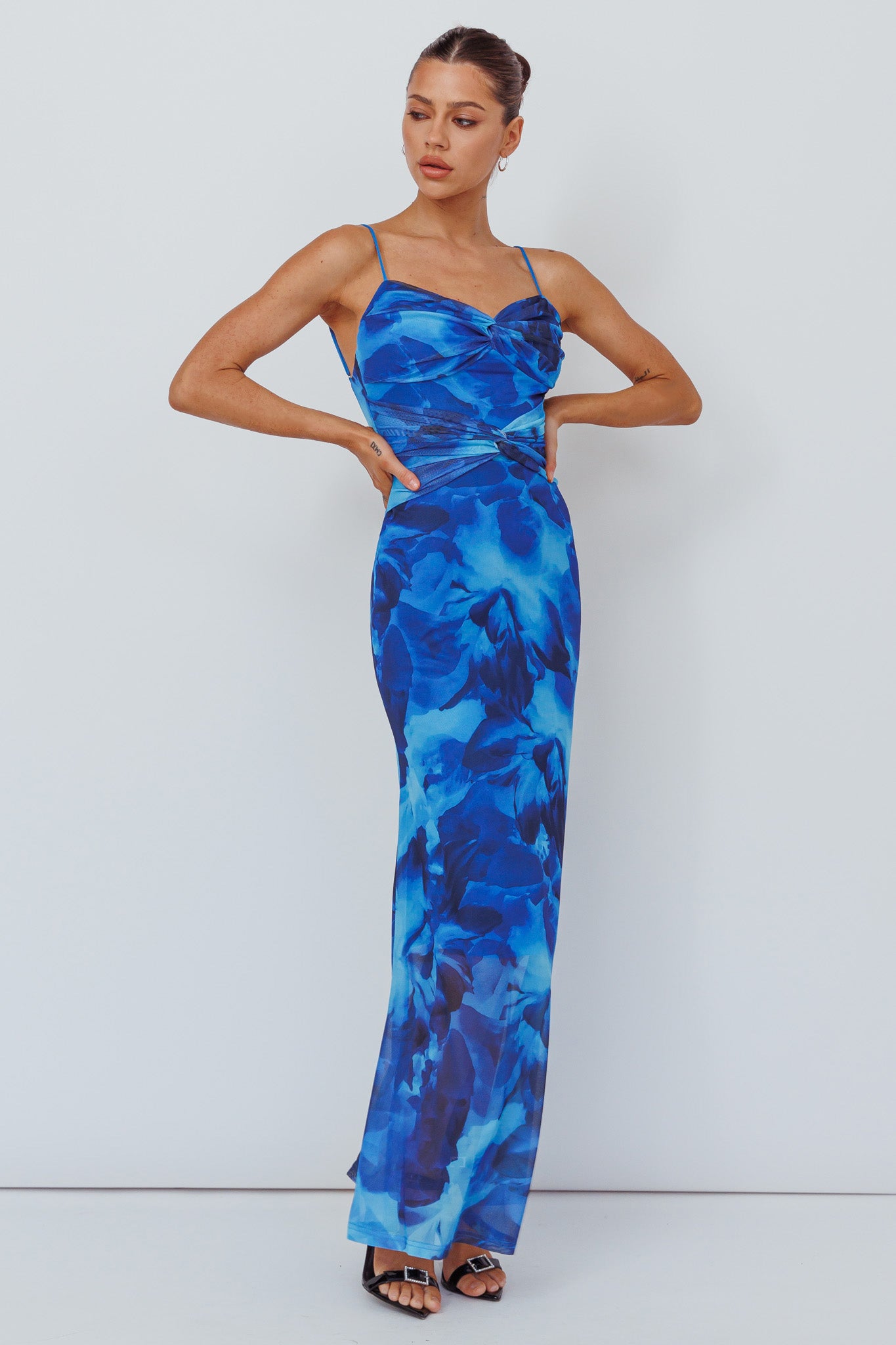 Beulah Twist Bodice Maxi Dress Floral Blue