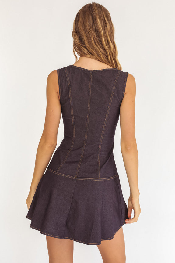 Big Plans Button Front Mini Dress Denim Indigo