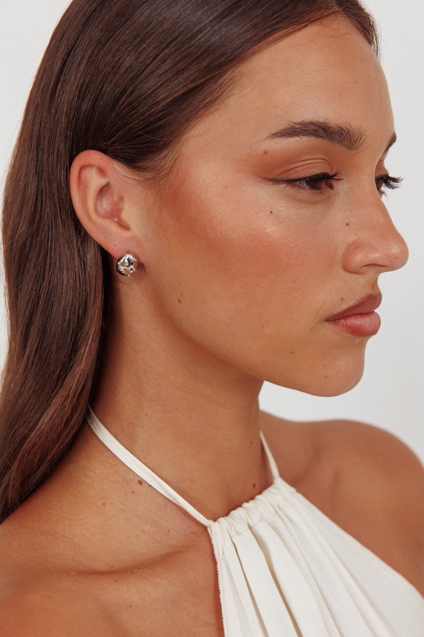 Billie Diamante Pebble Earrings Dark Silver