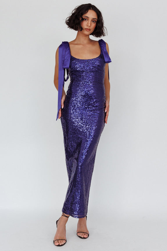 Light up the room in our stunning Birthday Wish maxi dress. Featuring tied shoulders and sequins throughout. It's perfect for a special event or birthday celebration. Team it with silver, tie-up heels and a clutch for an unforgettable look.