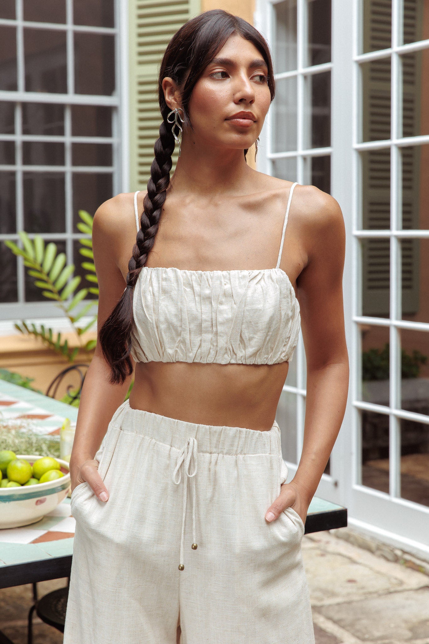 Bondi Gathered Crop Top Oat