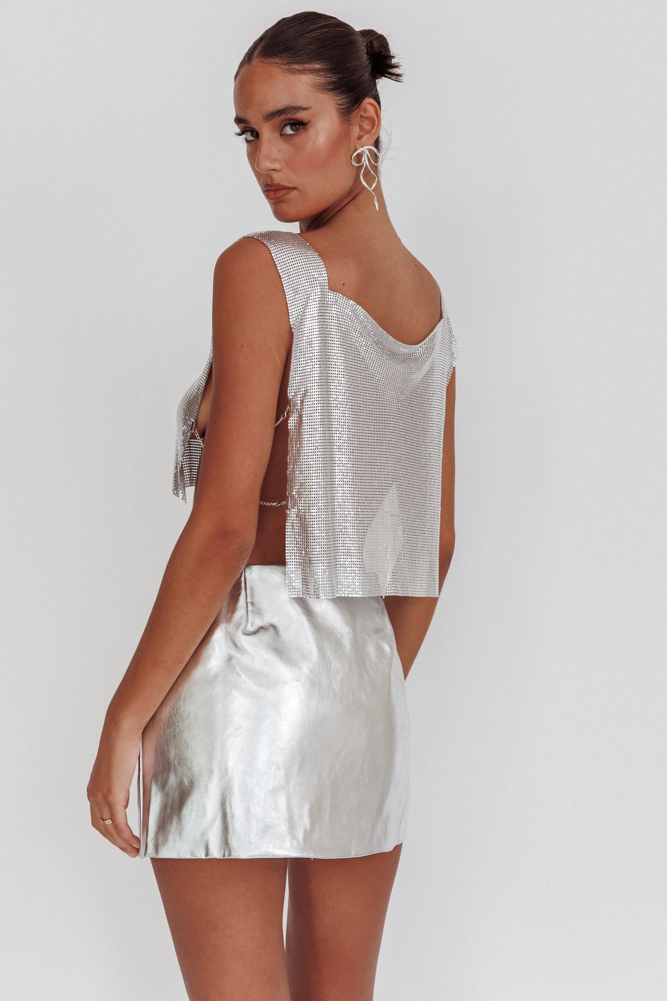 - Cropped silver metal mesh top