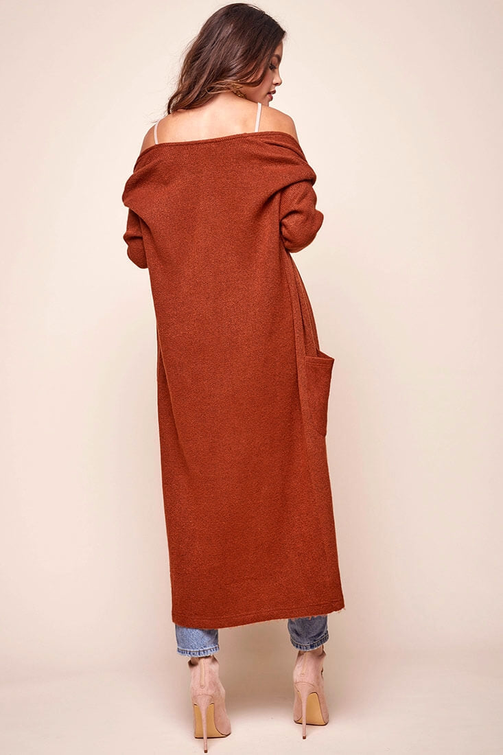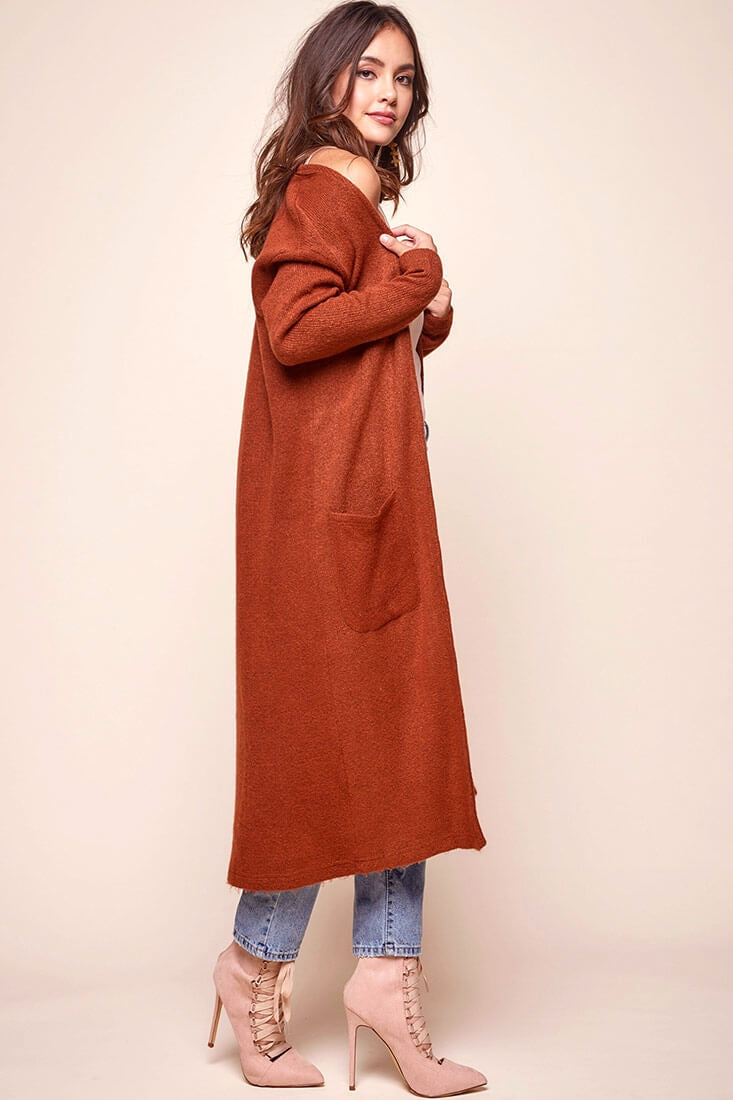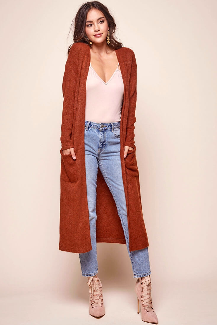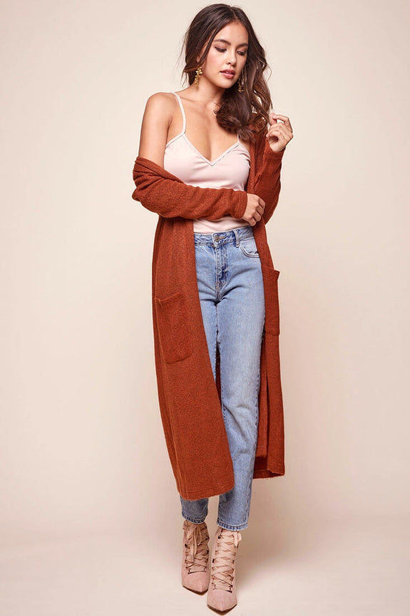 Every woman needs a staple cardigan in her wardrobe! Add this long sleeved, knee-length cardi to your roster and it'll quickly become your favorite.