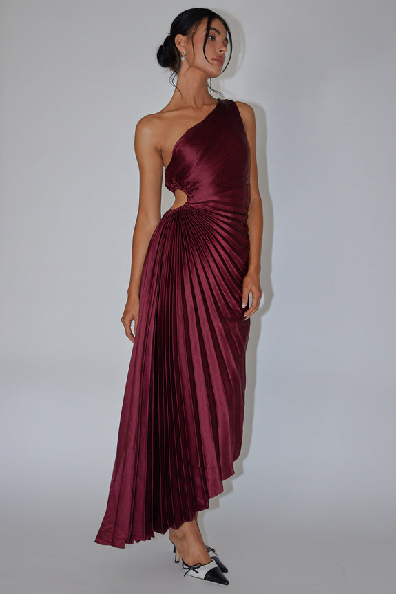Brooklynn One-Shoulder Accordion Pleat Dress Wine