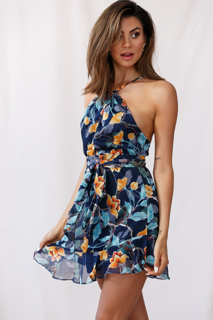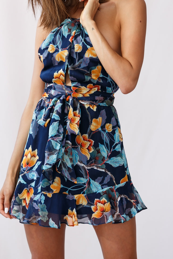 Perfect for your next island vacay, our Bula dress features a unique back-tie halterneck style, partial lining, separate waist tie, open back and soft chiffon fabric. Team it with some canvas wedges on a warm night at your favorite rooftop bar or throw on some sandals for a day strolling the beach boardwalk. Dreamy!
