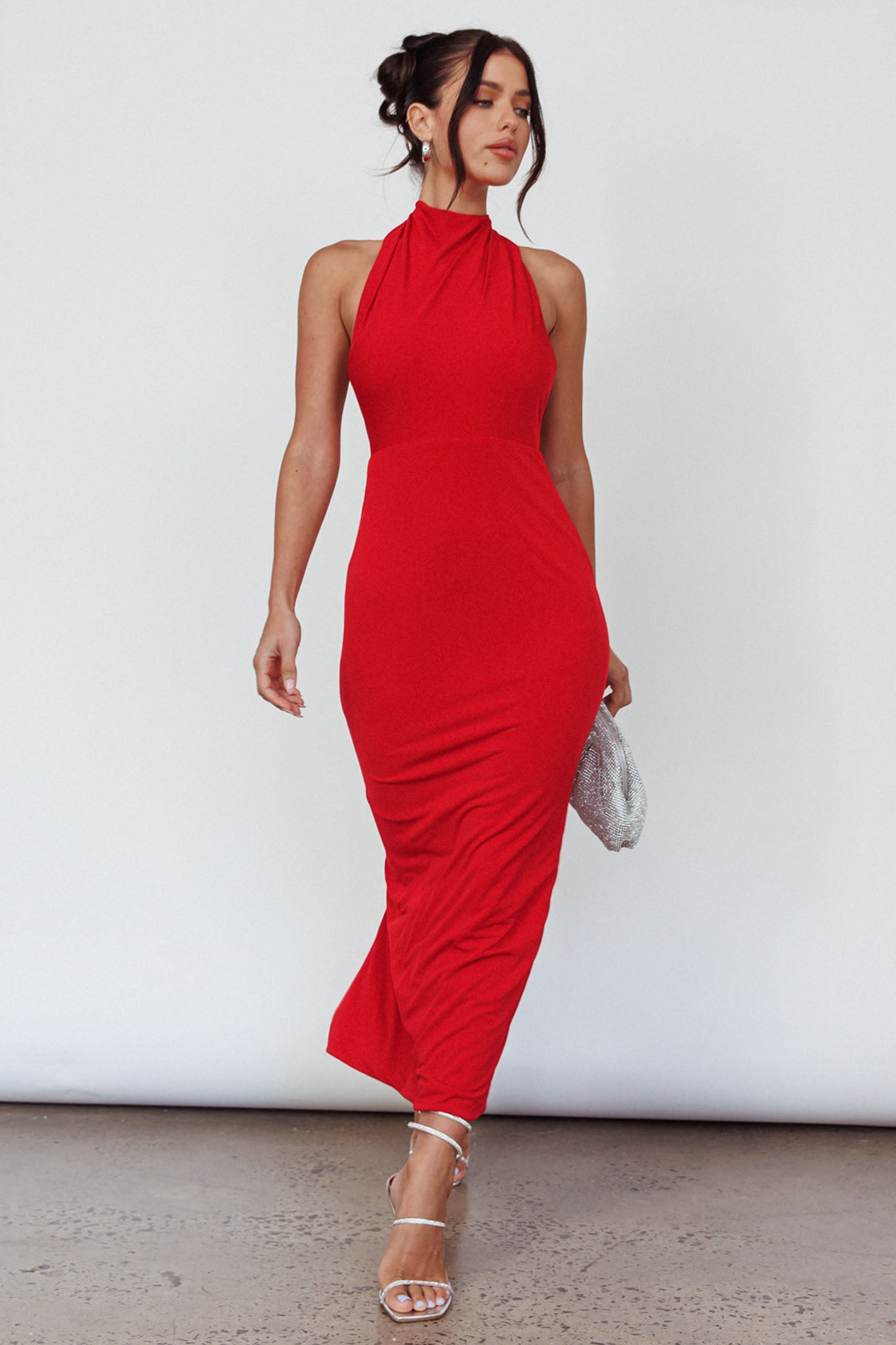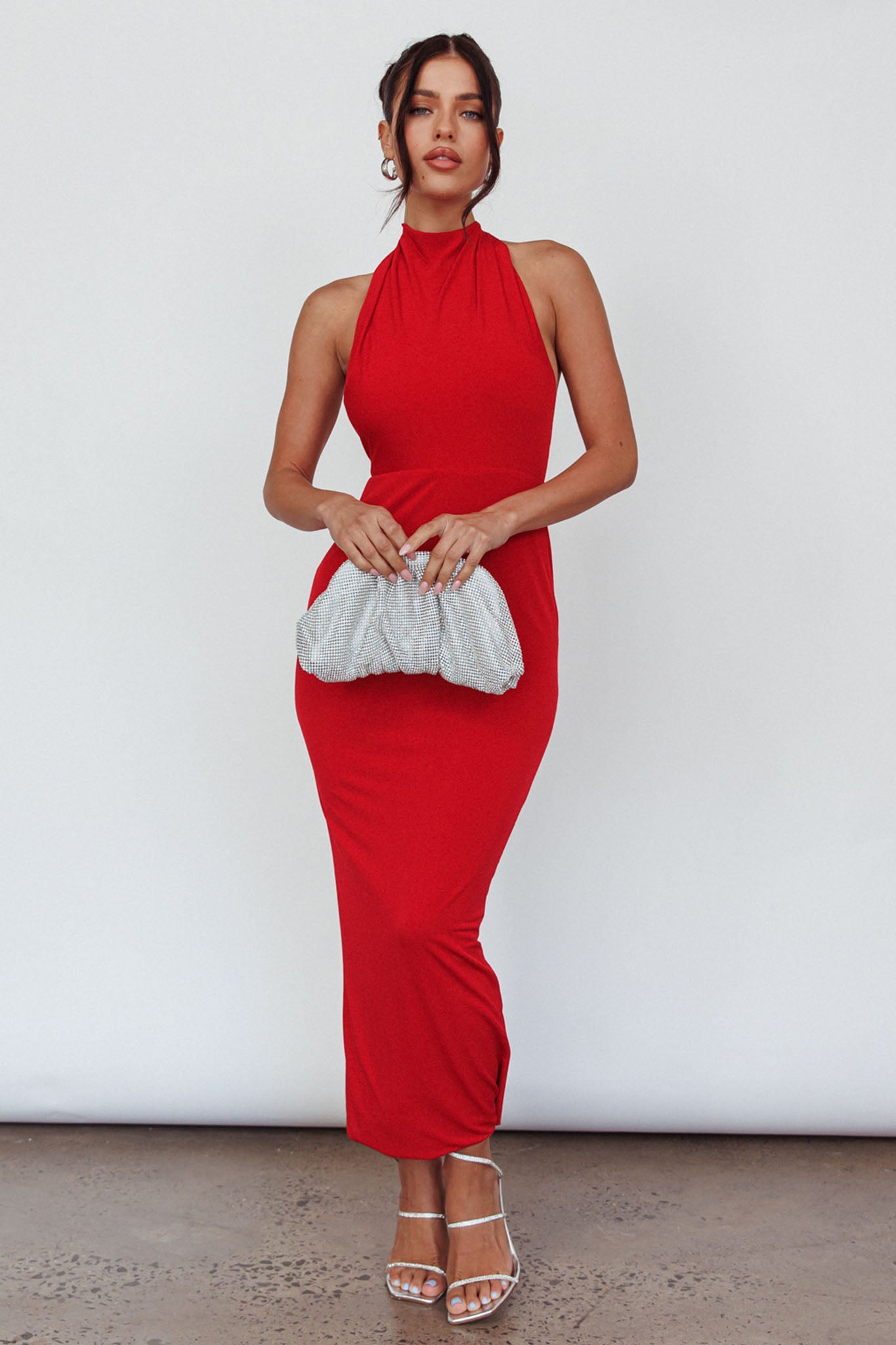 Steal the spotlight in our gorgeous Caden midi dress. Featuring a sexy, open back and halter neckline. It's perfect for a fun girls' night out teamed with strappy, tie up heels and a saddle bag.