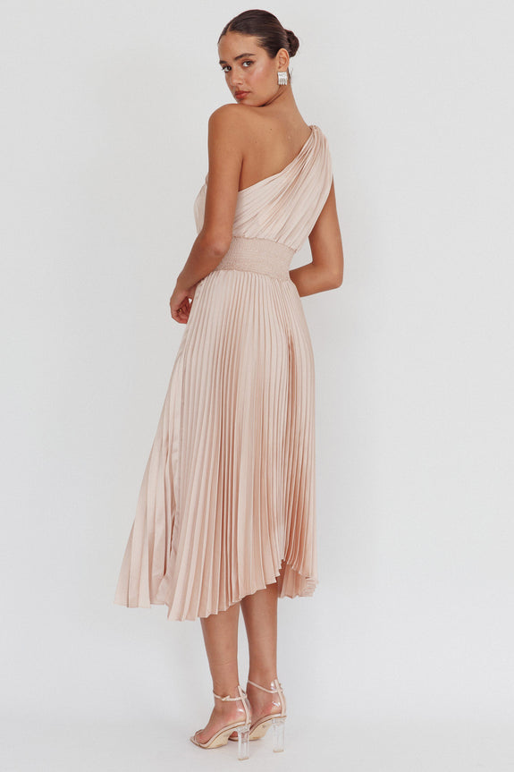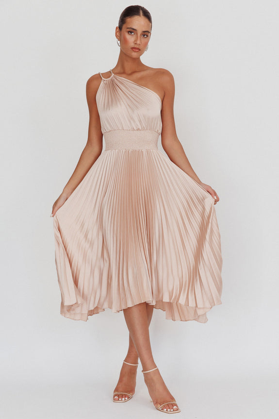 Calissa One Shoulder Pleated Midi Dress Champagne