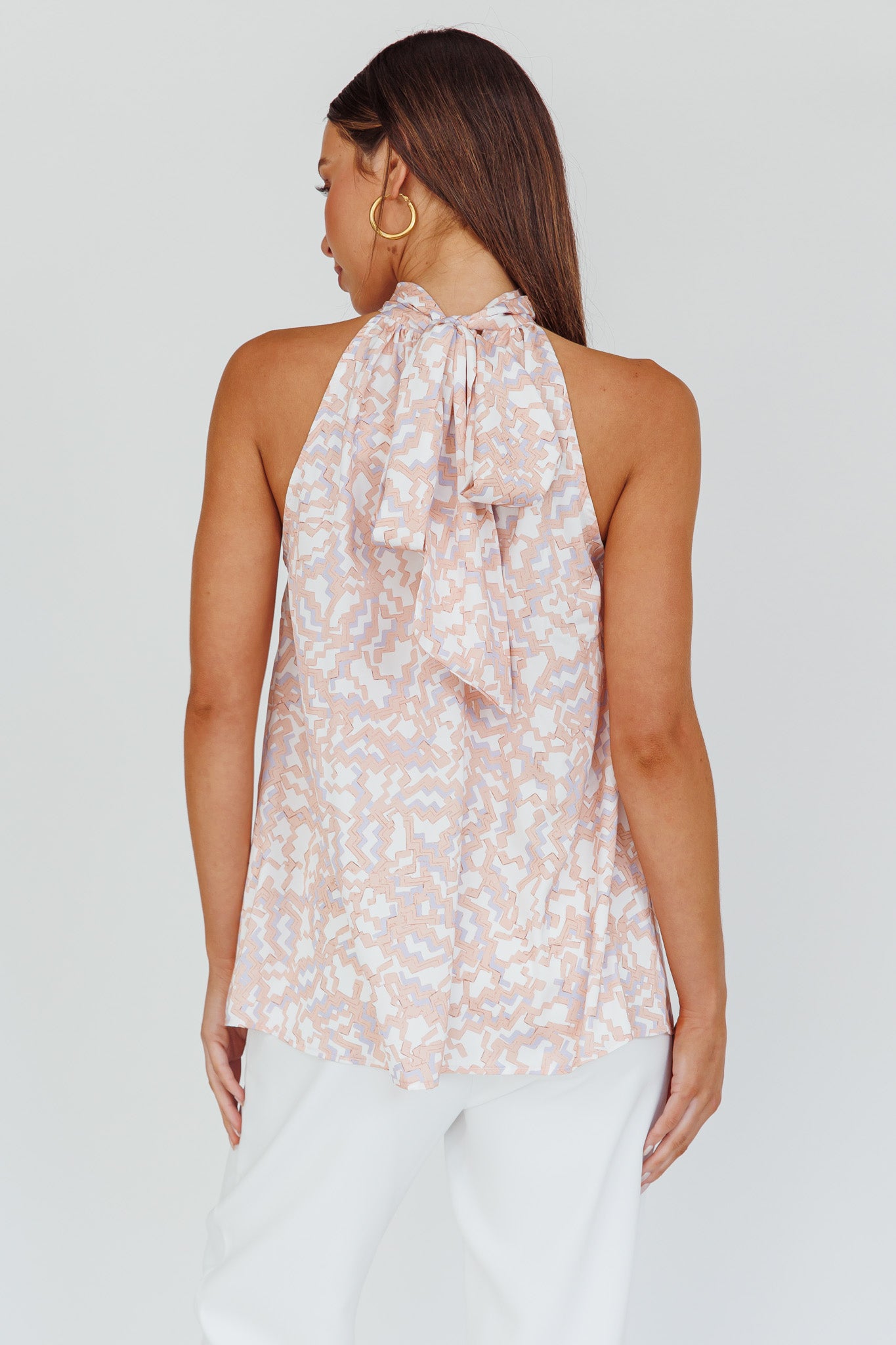 Calisto Sleeveless Tied Neck Top Geometric Apricot