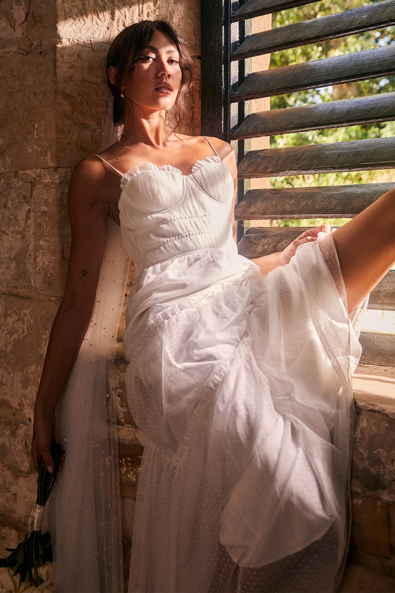 Steal the show in our gorgeous Calla midi dress. We are in love with its delicate hail spot mesh overlay and flattering sweetheart neckline. Perfect for the modern bride or a special occasion. Team it with white heels and a clutch for an unforgettable look.