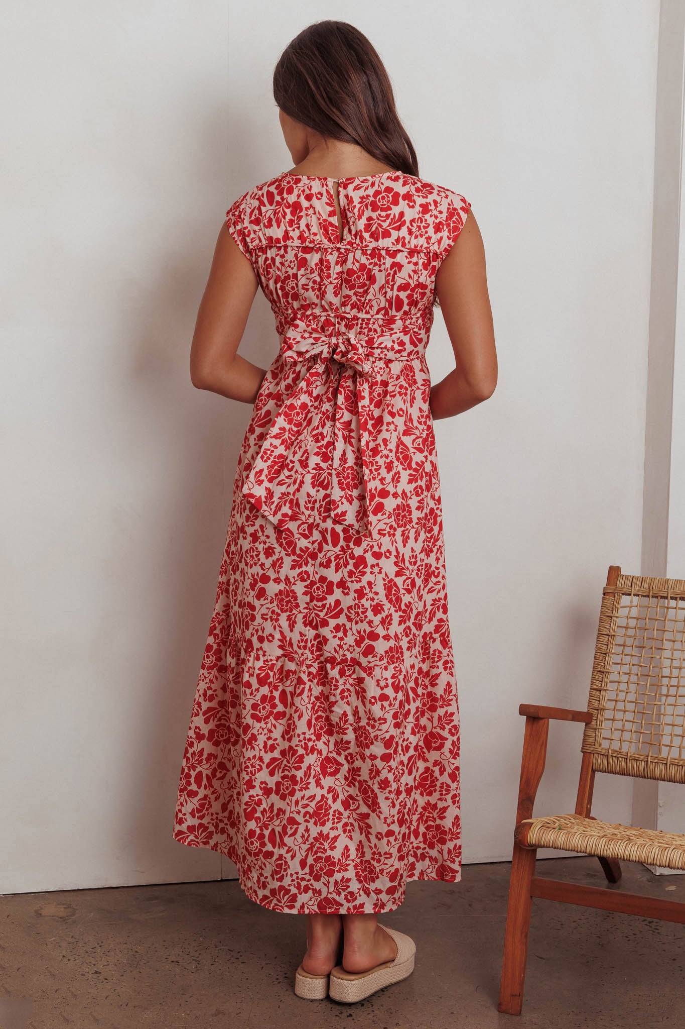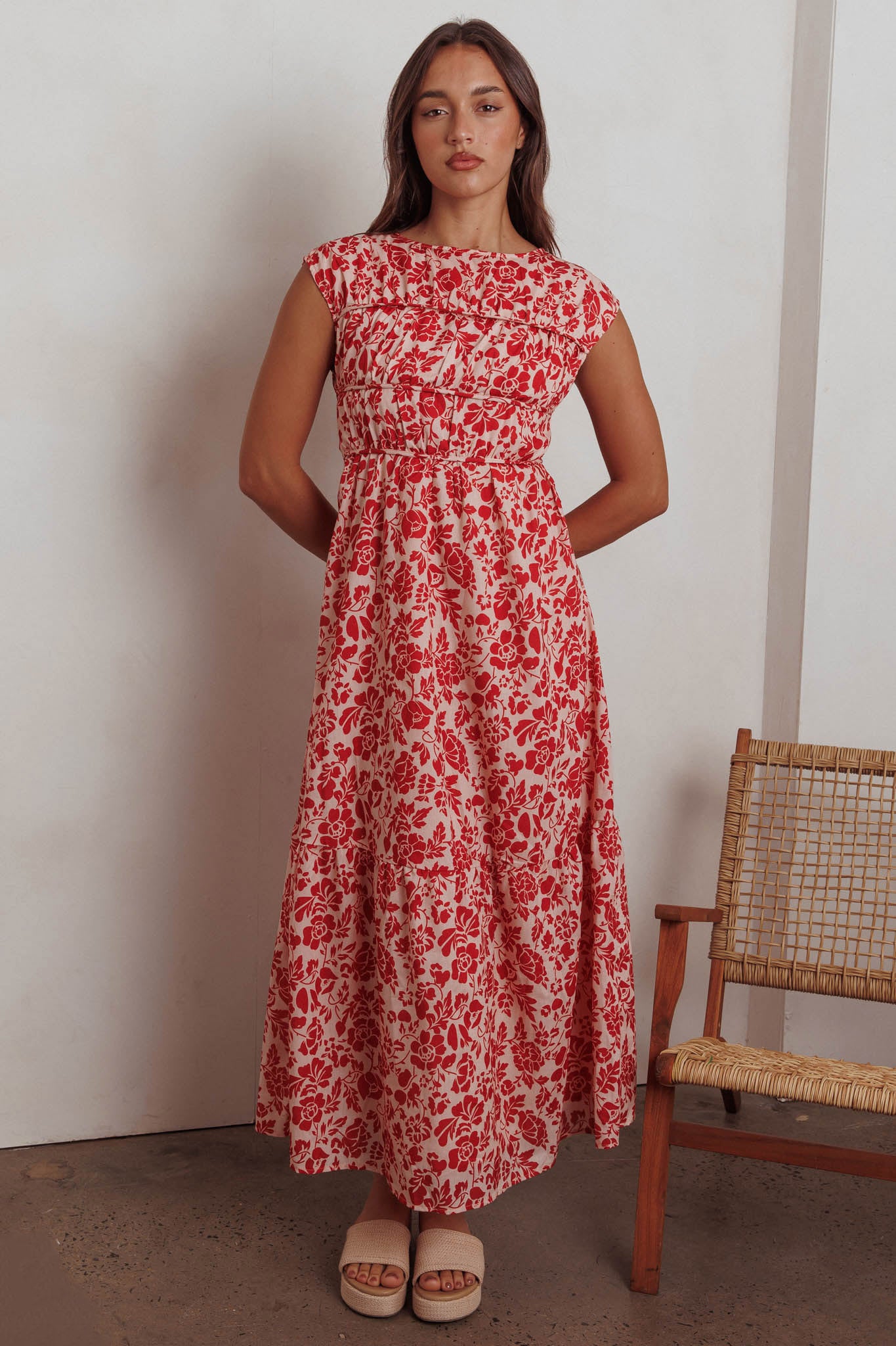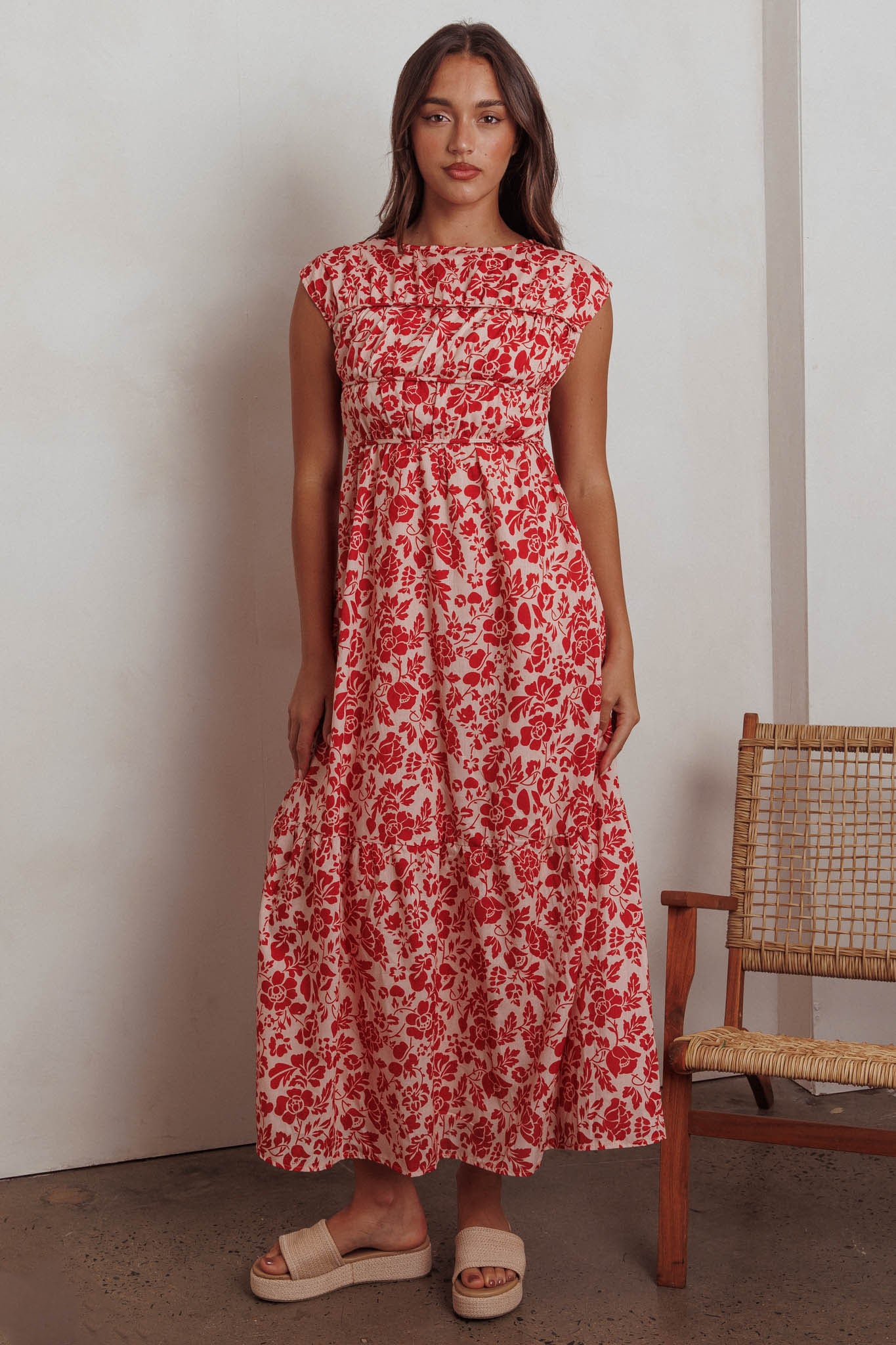 Called Out Gathered Bodice Maxi Dress Floral Red