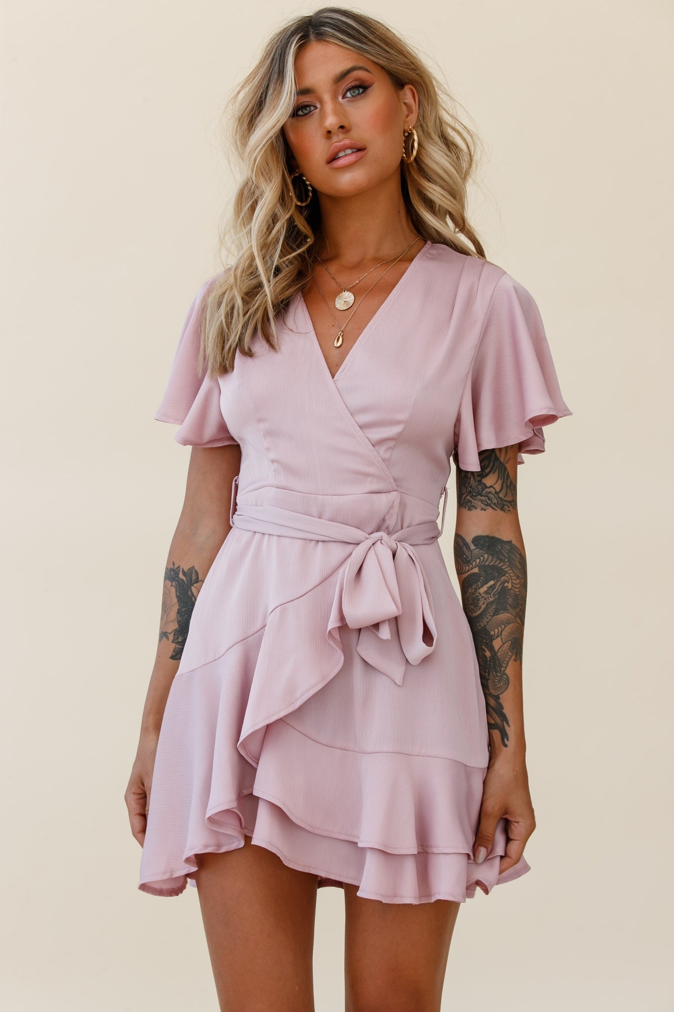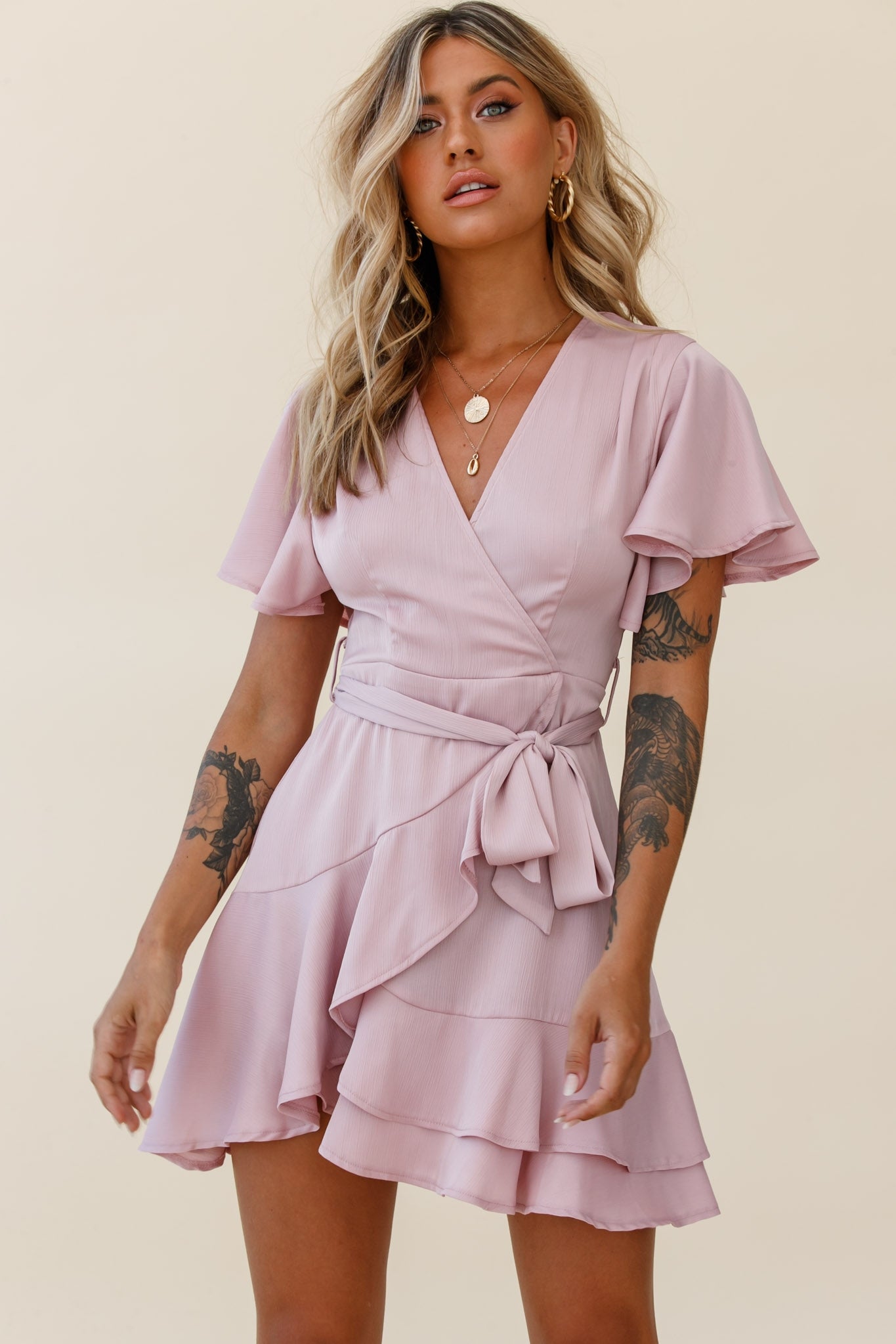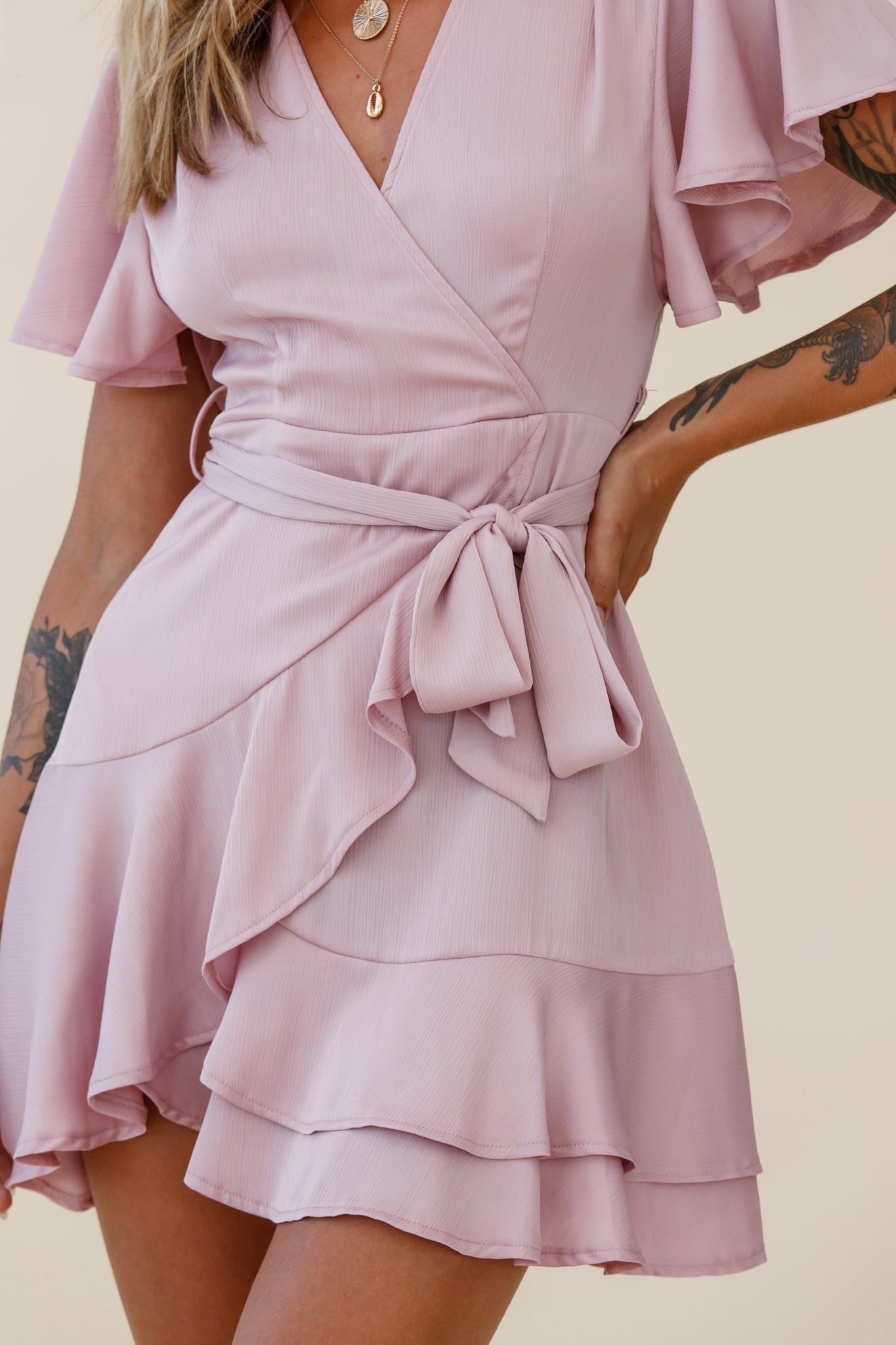 Cami Angel Sleeve Faux Wrap Dress Blush